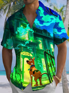 Alohadaddy® Halloween Scooby-Doo Printed Elastic Pocket Button Men's Short Sleeve Shirt Big & Tall