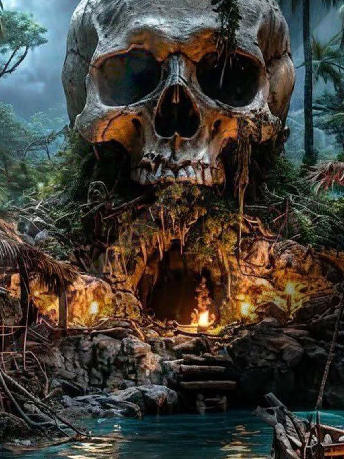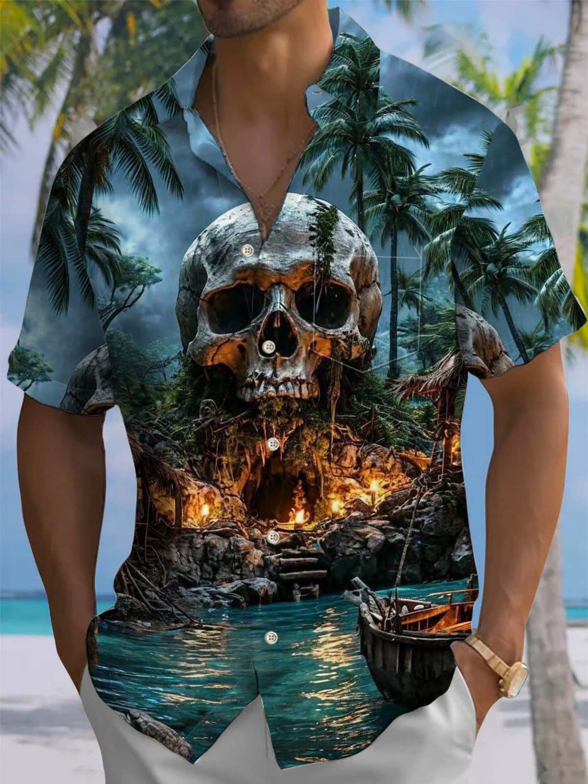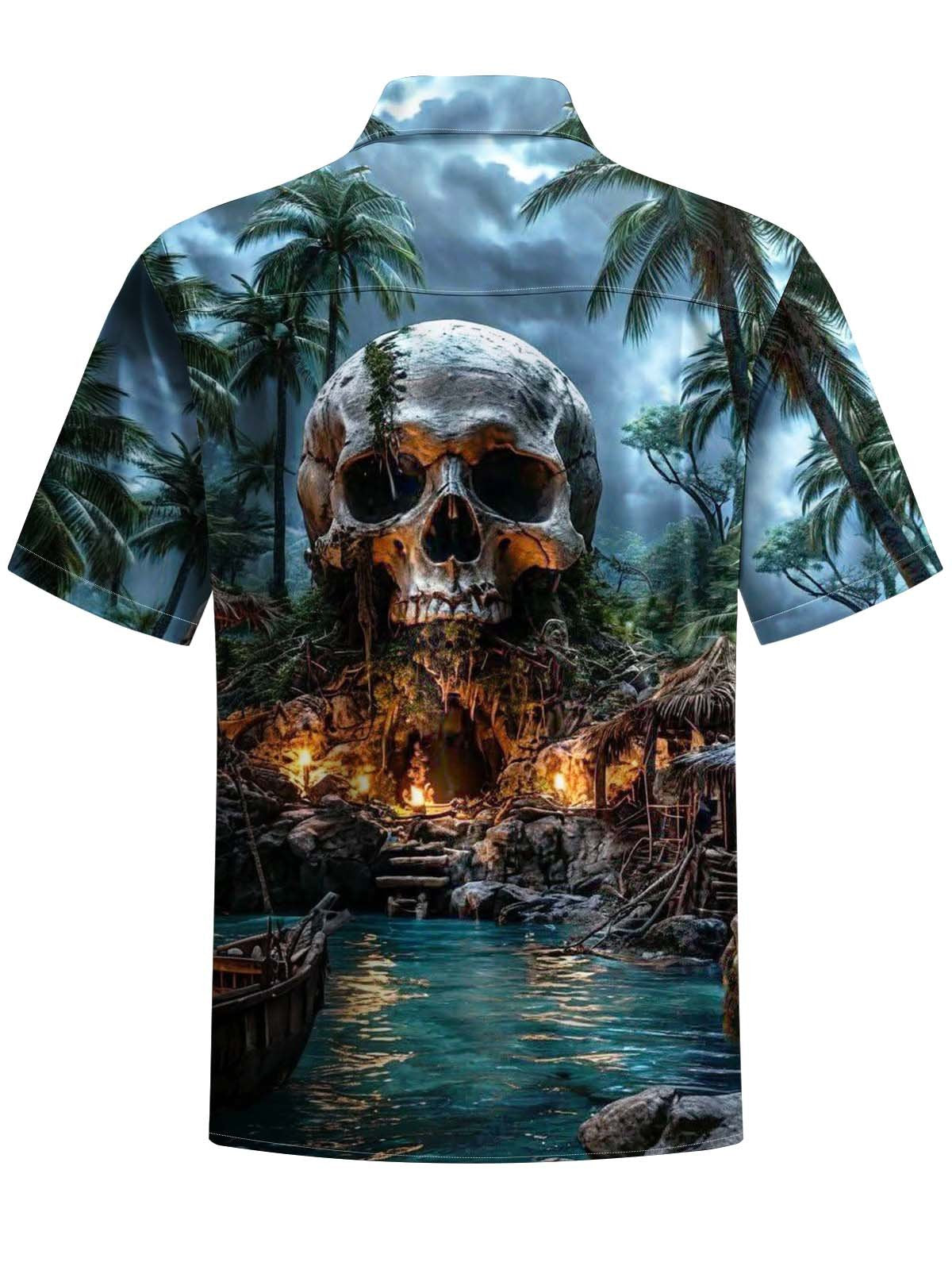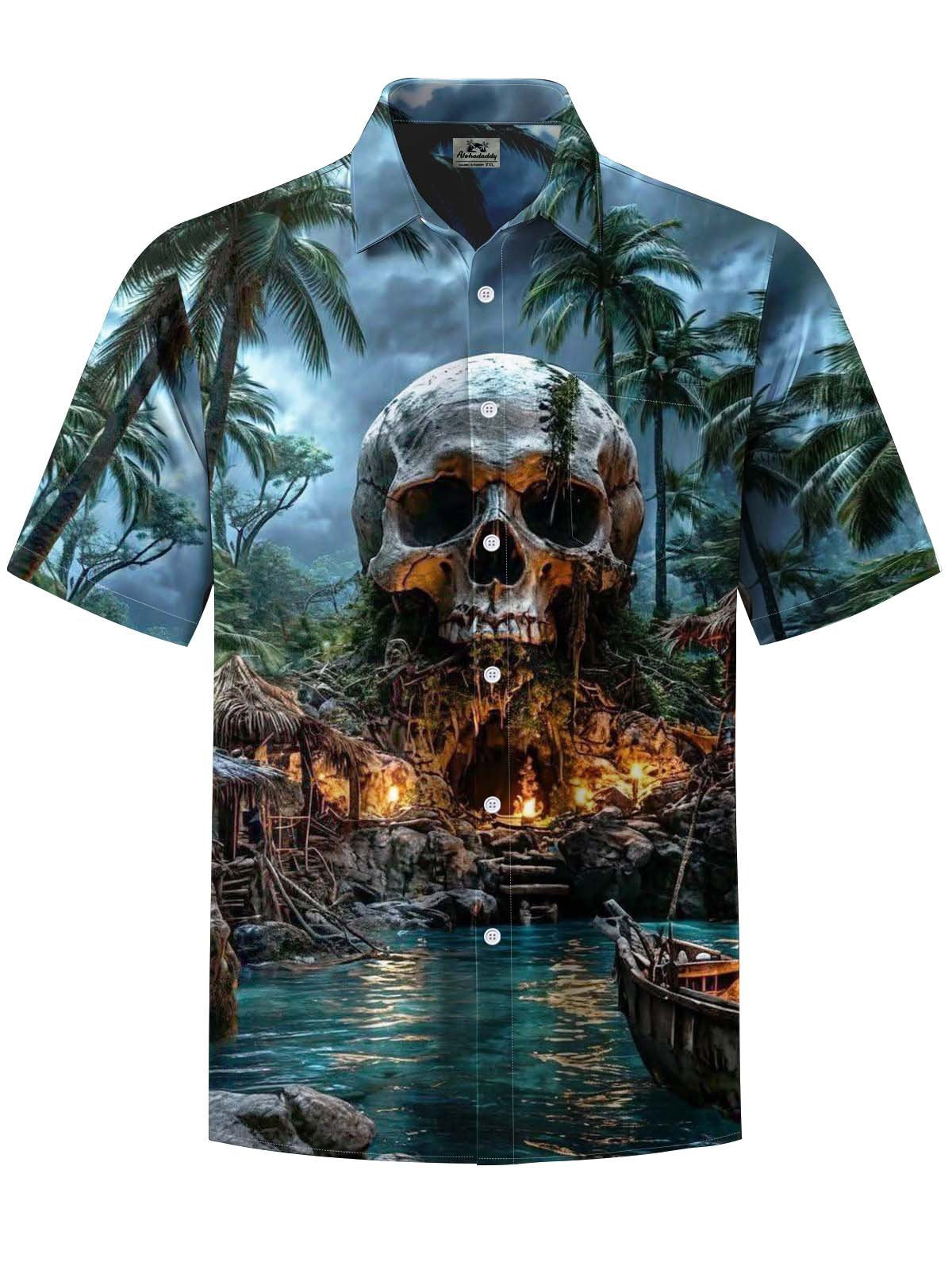 Alohadaddy® Hawaiian Skull Island Print Art Pocket Elastic Men's Short Sleeve Shirt Big & Tall