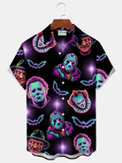 Alohadaddy® Holiday Halloween Horror Movie Night Print Men's Button Pocket Short Sleeve Shirt Big & Tall