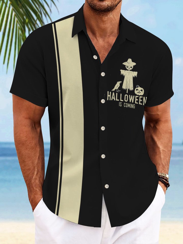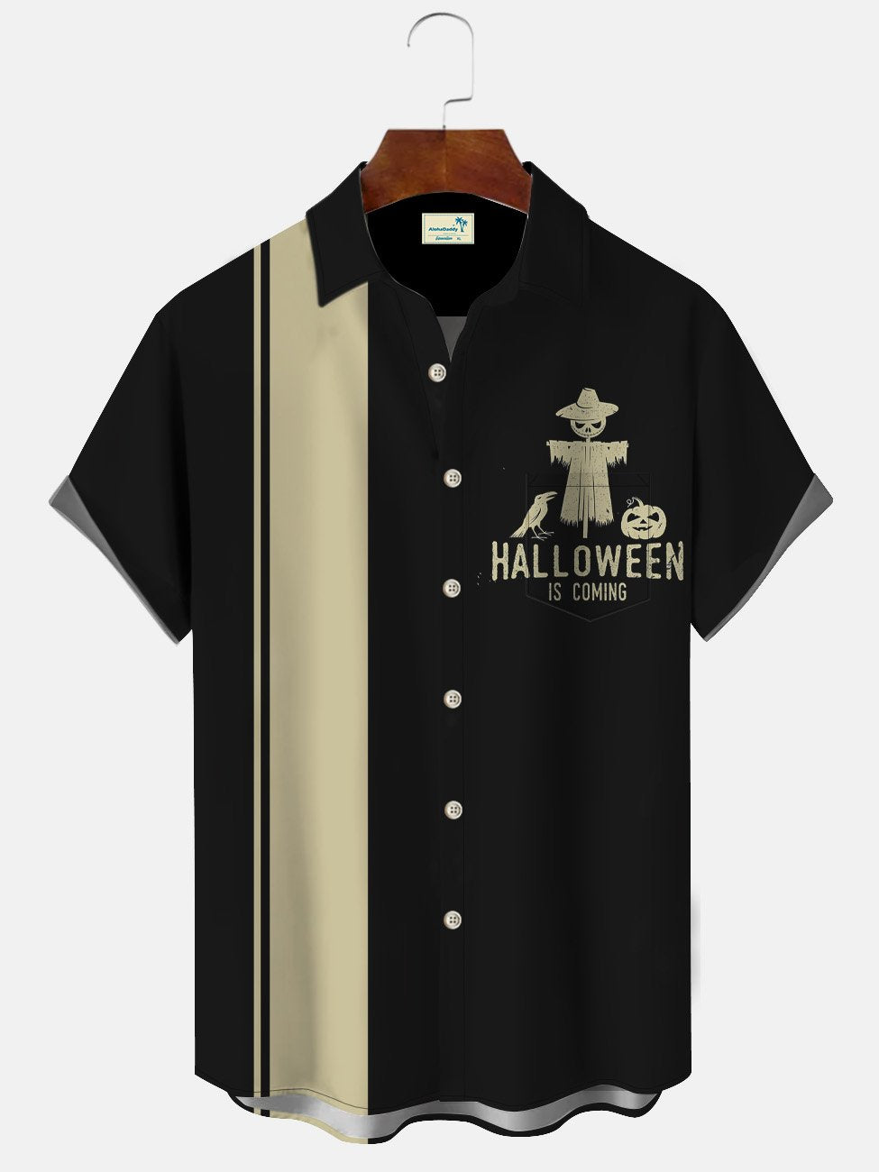 Alohadaddy Halloween Button Pocket Casual 50S Bowling Commuter Short Sleeve Shirt