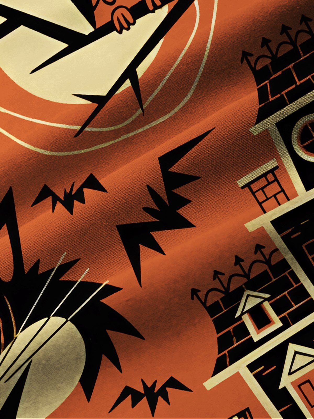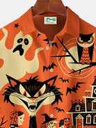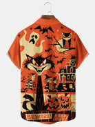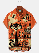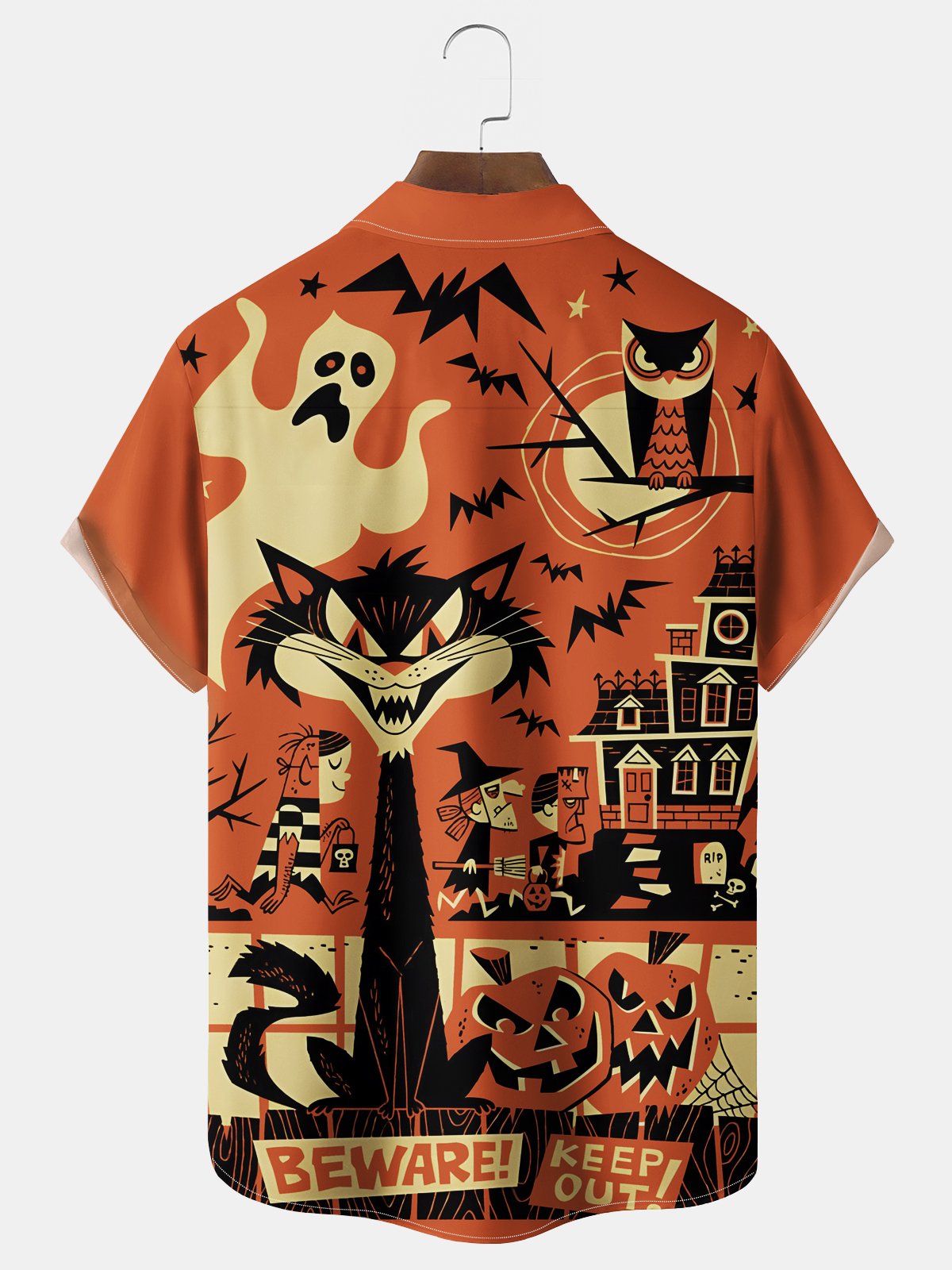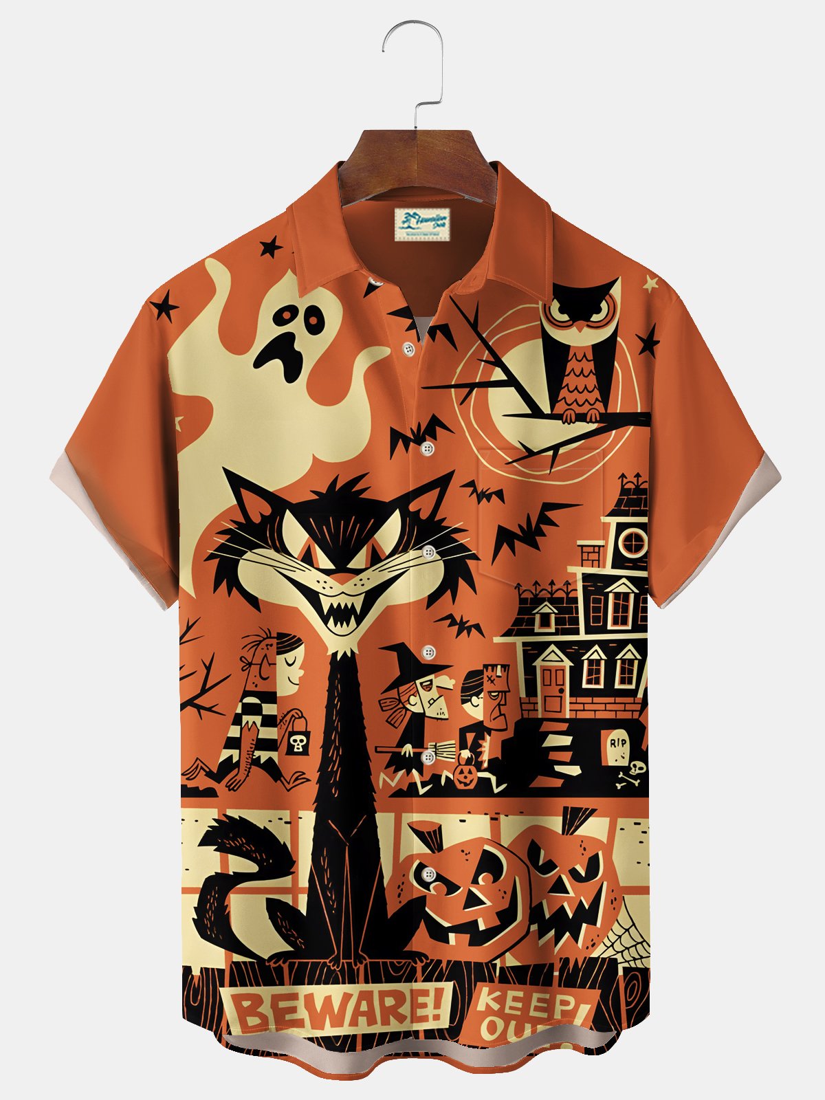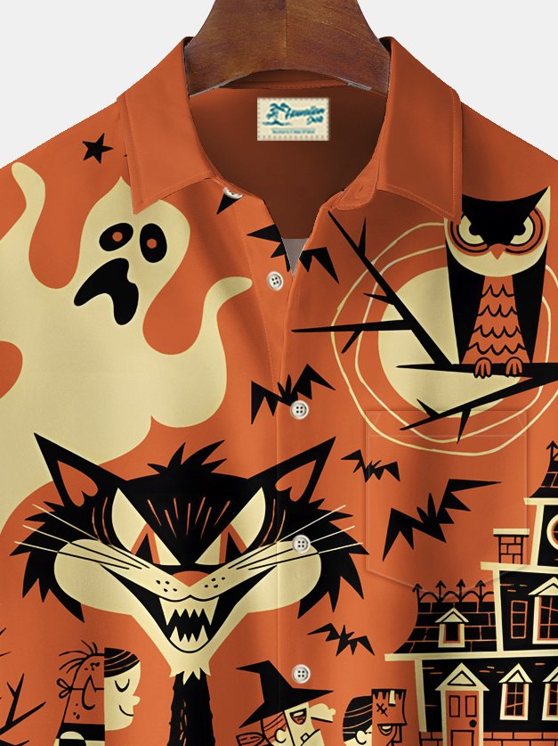 Alohadaddy Halloween Cartoon Print Men's Chest Pocket Stretch Shirt Big Tall