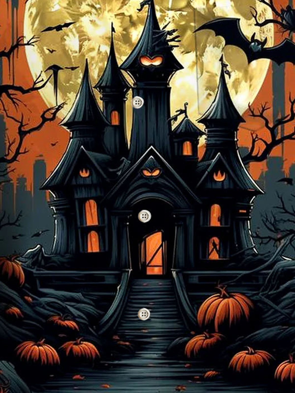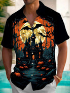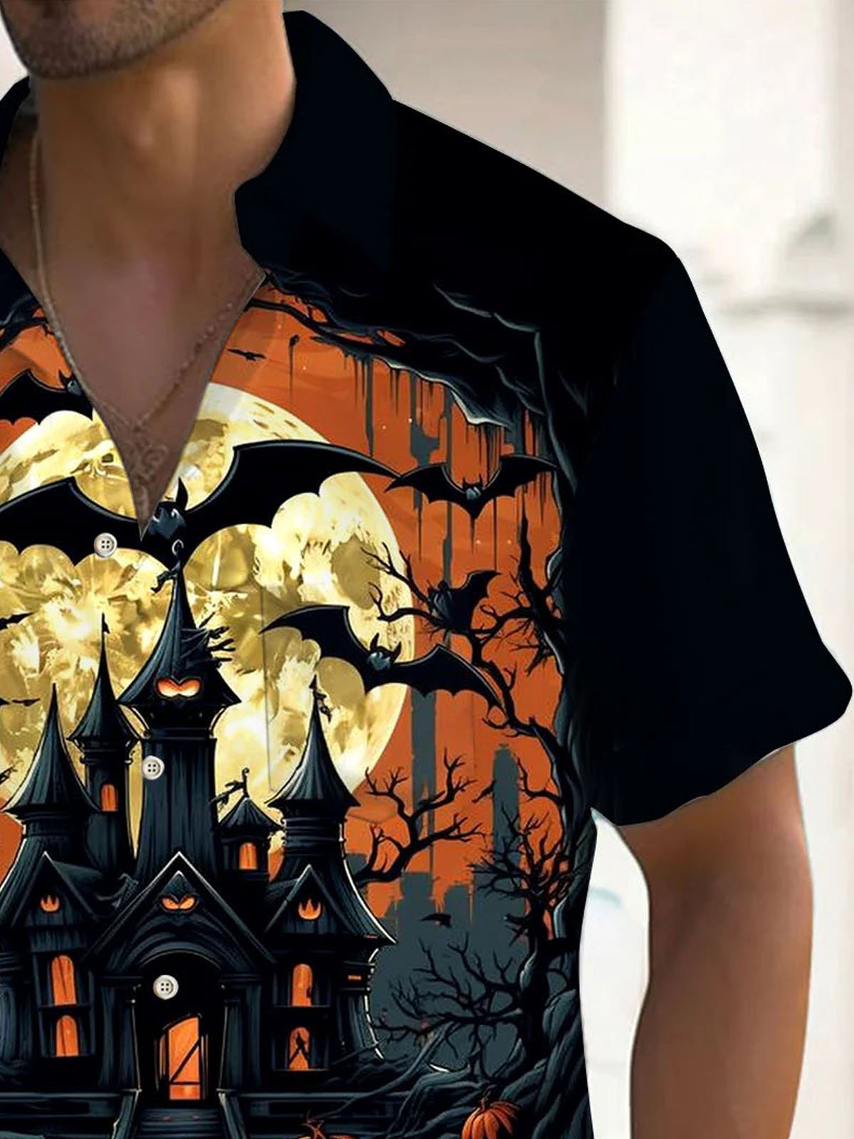 Alohadaddy Halloween Castle Bat 3D Digital Print Men's Button Pocket Short Sleeve Shirt Big & Tall