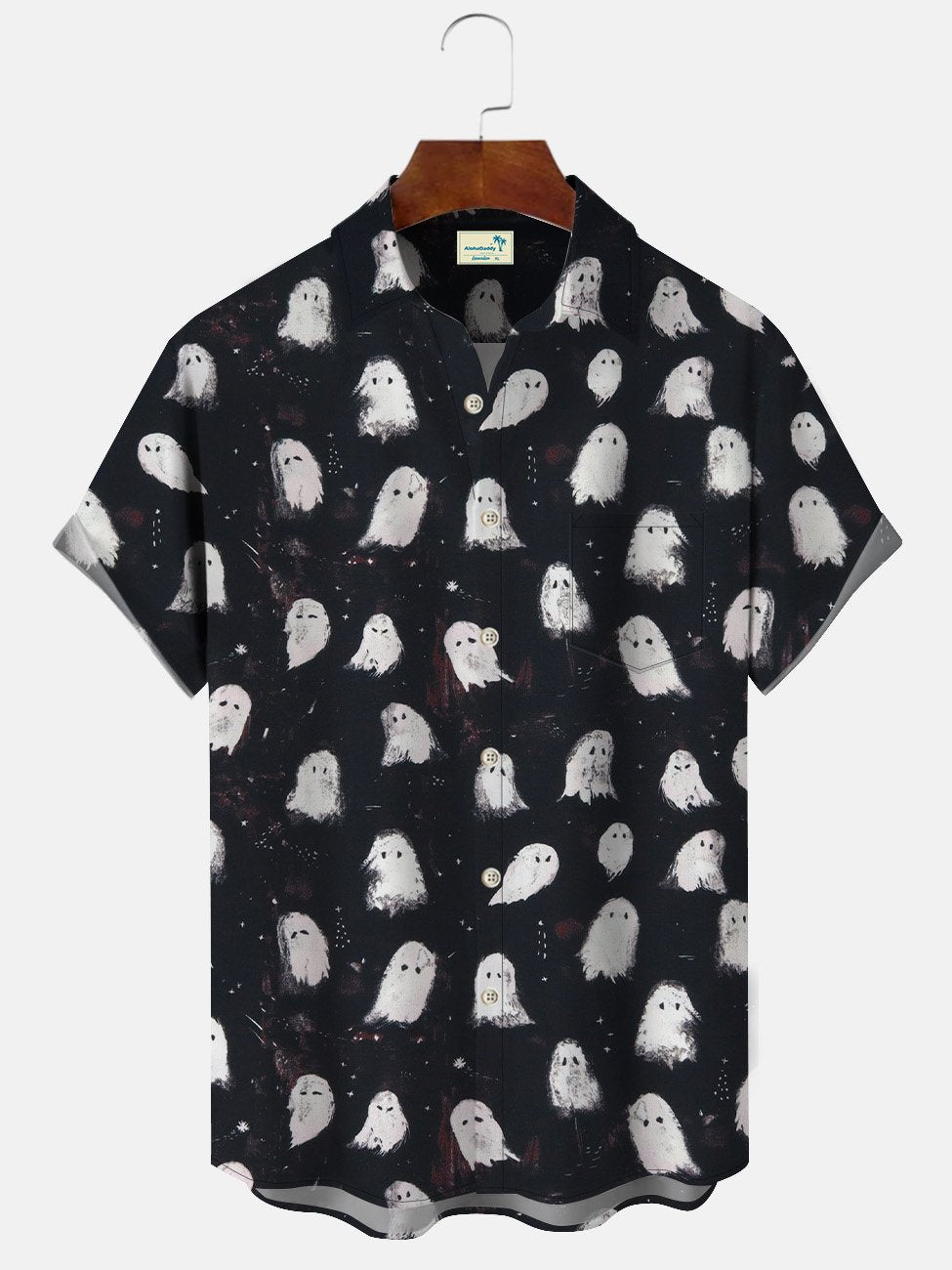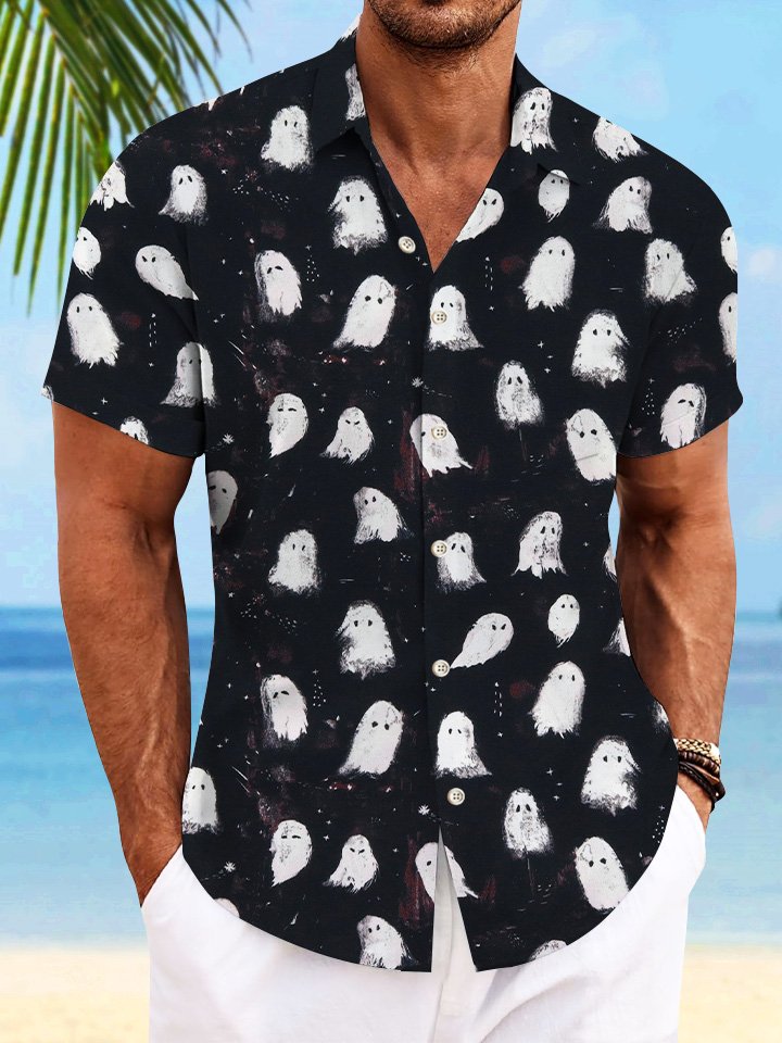 Alohadaddy Halloween Ghost Pocket Button Casual Short Sleeve Shirt