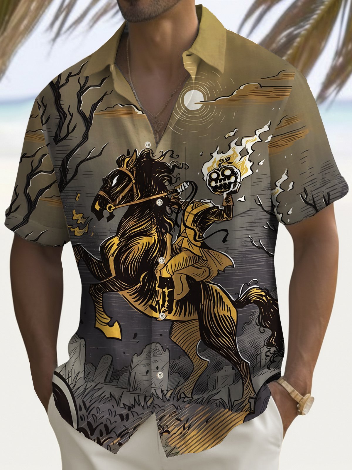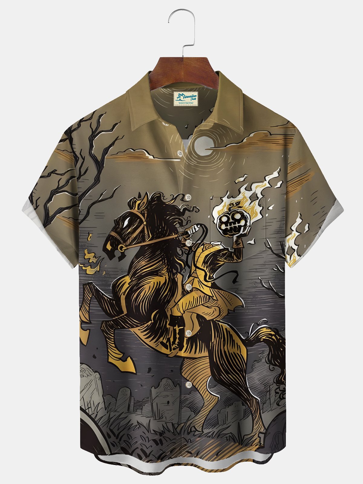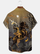 Alohadaddy Halloween Knight Print Men's Chest Pocket Stretch Shirt Big Tall