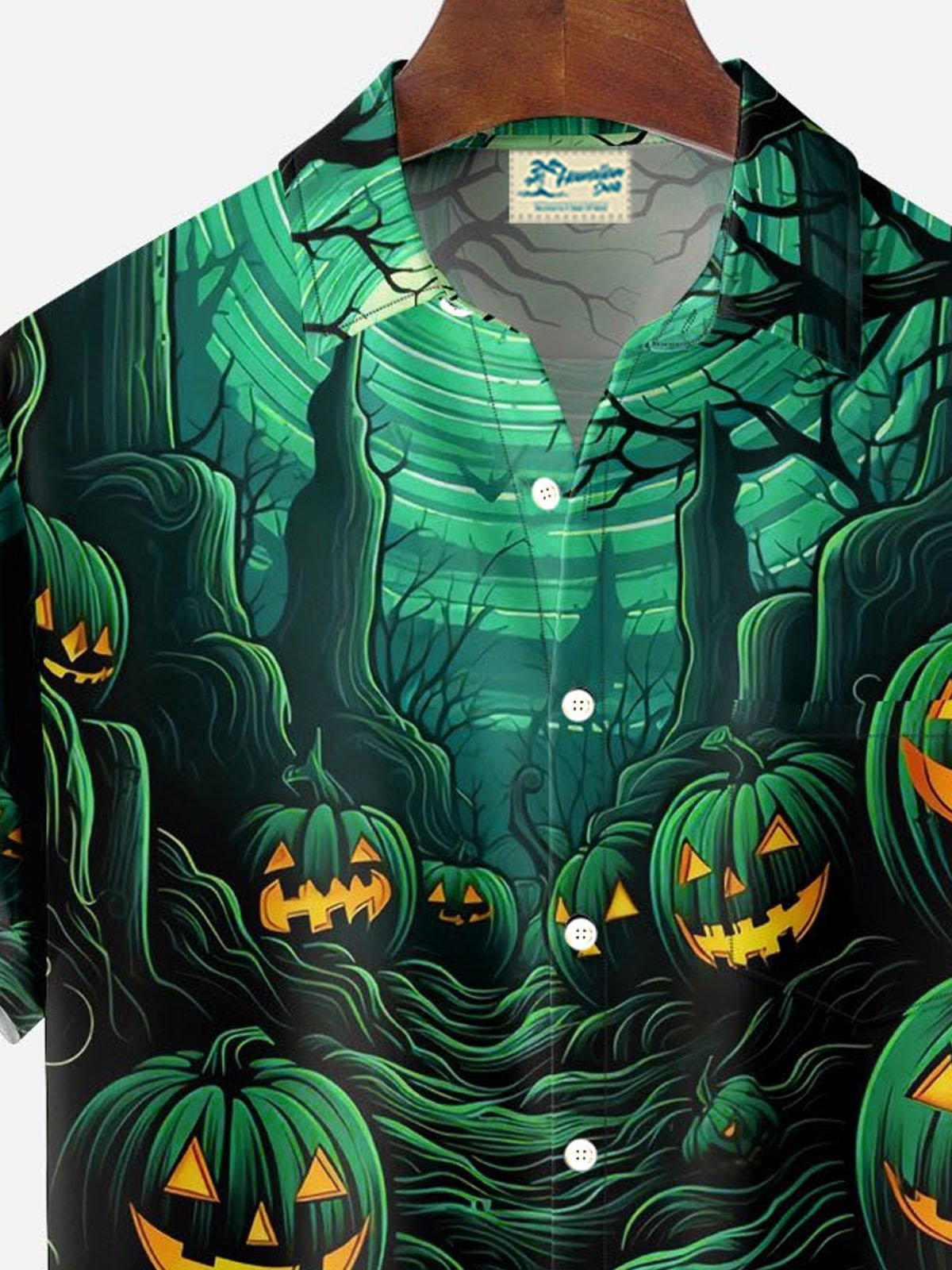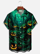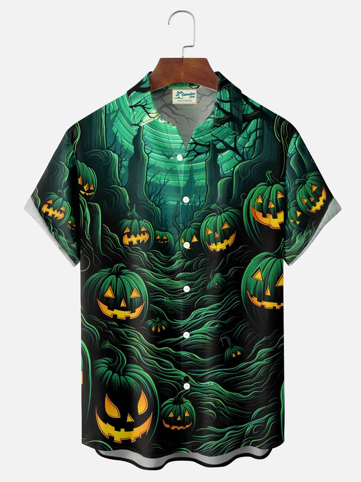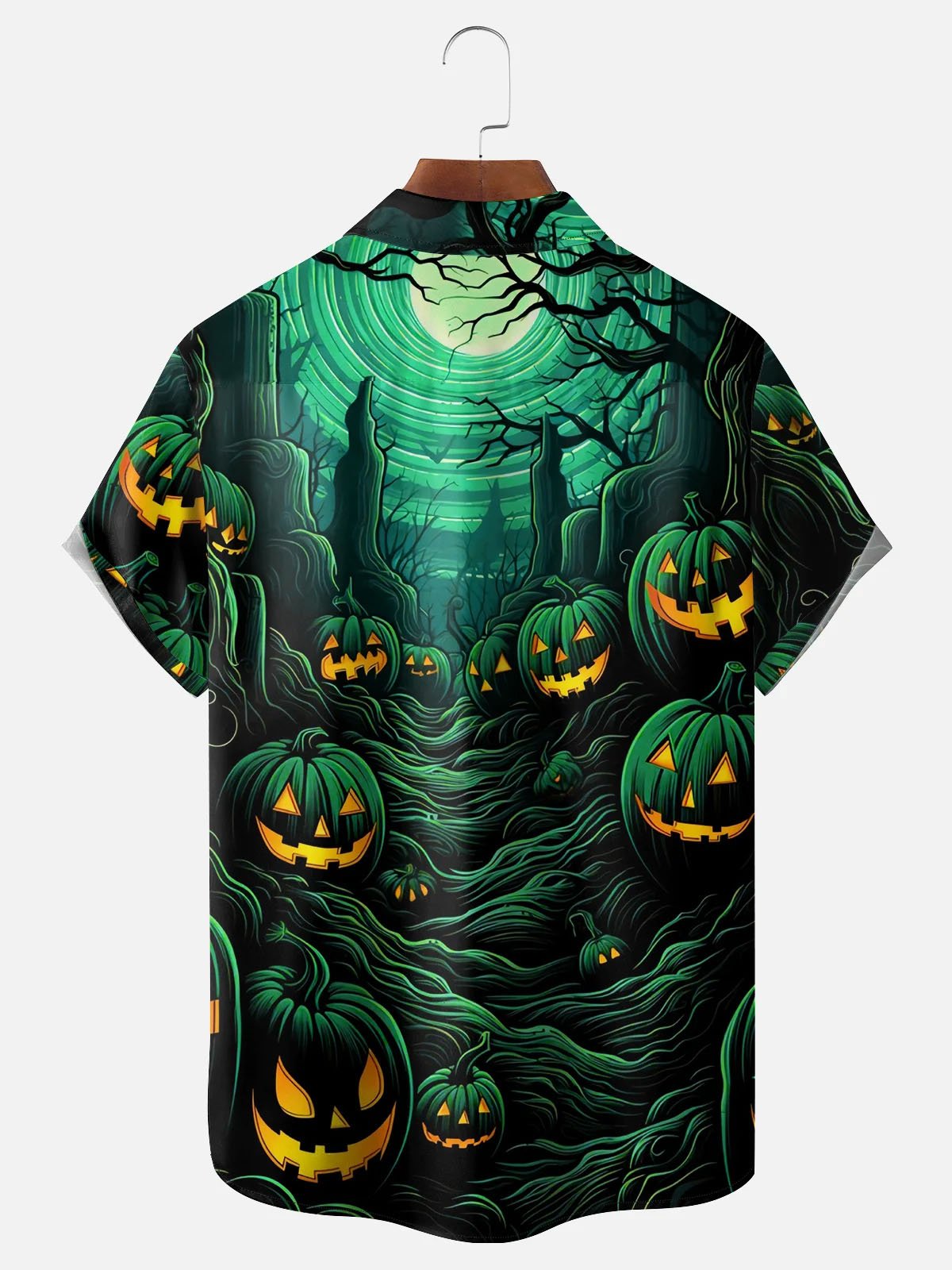 Alohadaddy Halloween Pumpkin 3D Digital Print Men's Button Pocket Short Sleeve Shirt Big & Tall