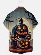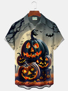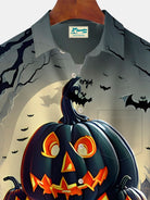 Alohadaddy Halloween Pumpkin Cartoon Print Men's Chest Pocket Stretch Shirt Big Tall