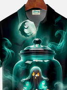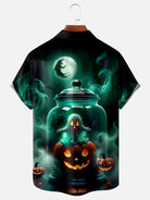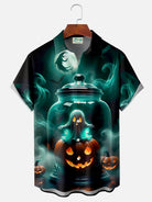 Alohadaddy Halloween Pumpkin Ghost 3D Digital Print Men's Button Pocket Short Sleeve Shirt Big & Tall
