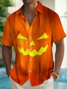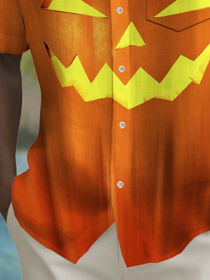 Alohadaddy Halloween Pumpkin Print Men's Chest Pocket Stretch Shirt Big Tall