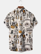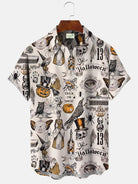 Alohadaddy Halloween Pumpkin Skull Button Pocket Casual Short Sleeve Shirt