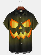 Alohadaddy Halloween Pumpkin Smiley Face Textured Print Men's Breast Pocket Button Short Sleeve Shirt