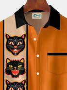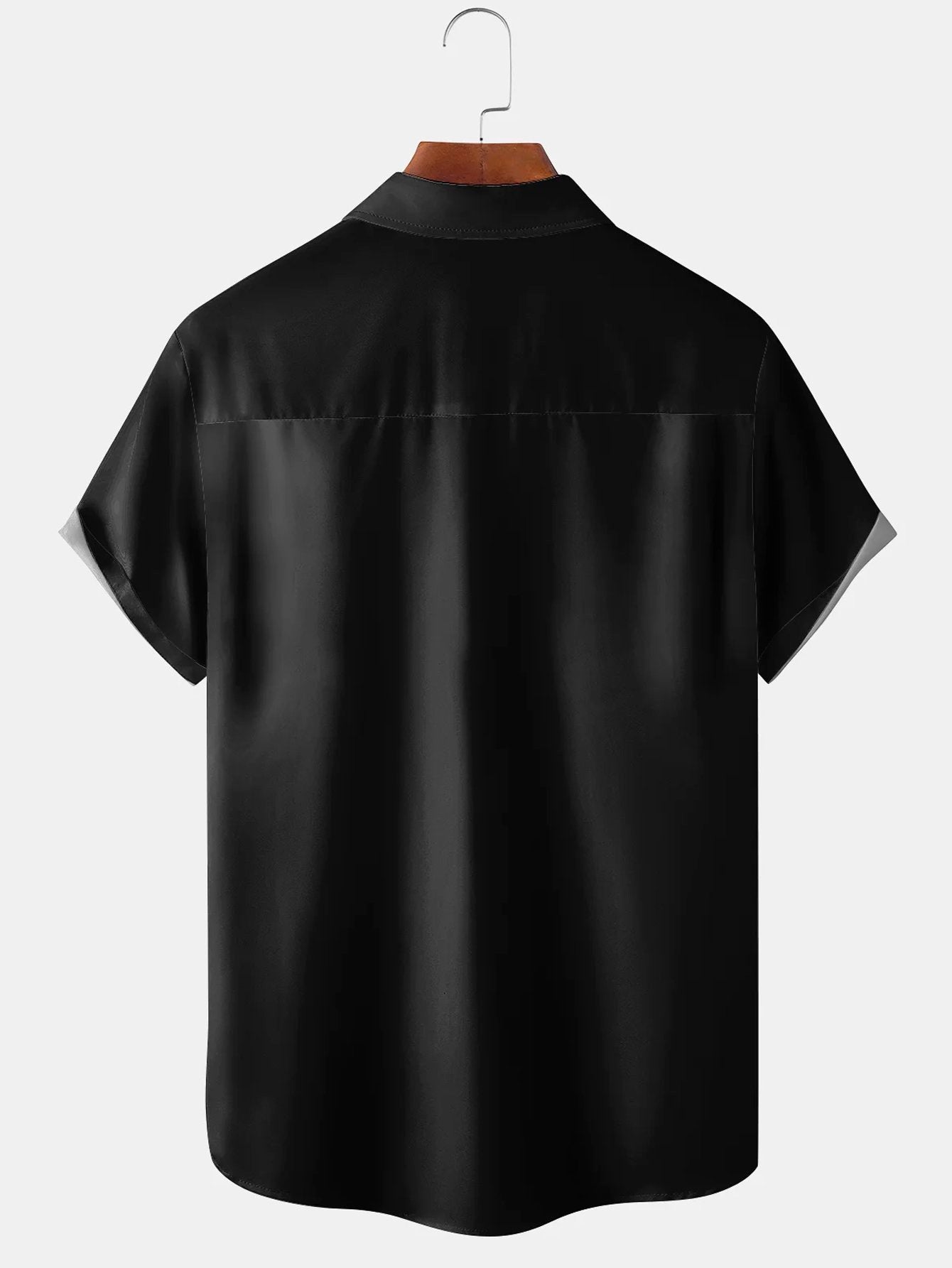 Alohadaddy Halloween Retro Bowling 3D Digital Print Men's Button Pocket Short Sleeve Shirt Big & Tall
