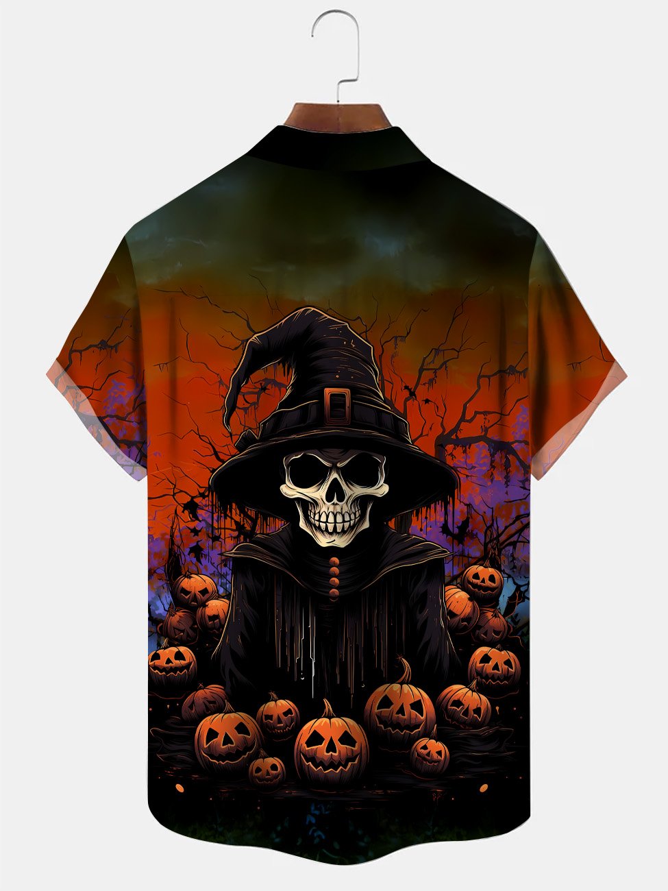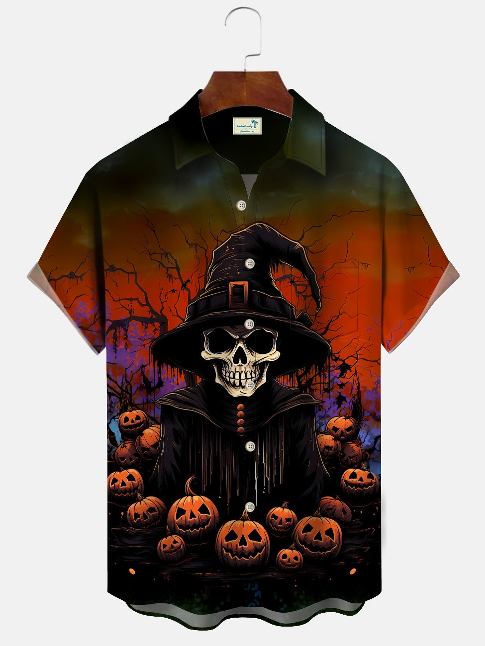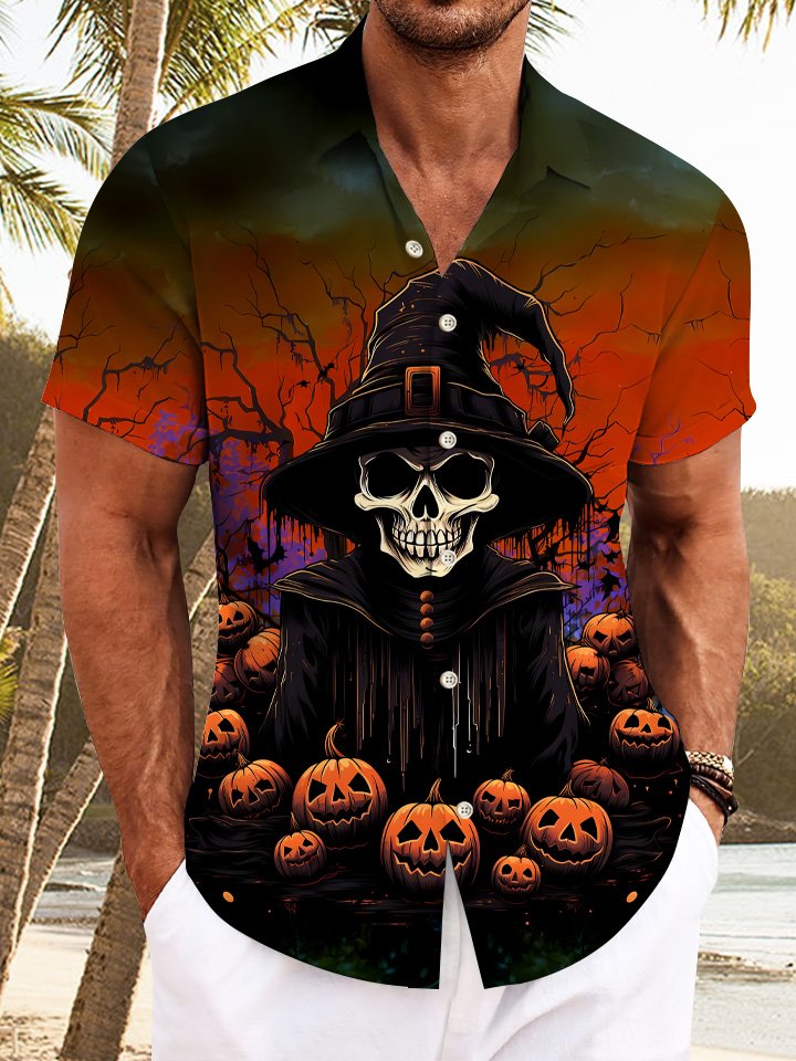 Alohadaddy Halloween Skeleton Wizard Button Pocket Casual Short Sleeve Shirt