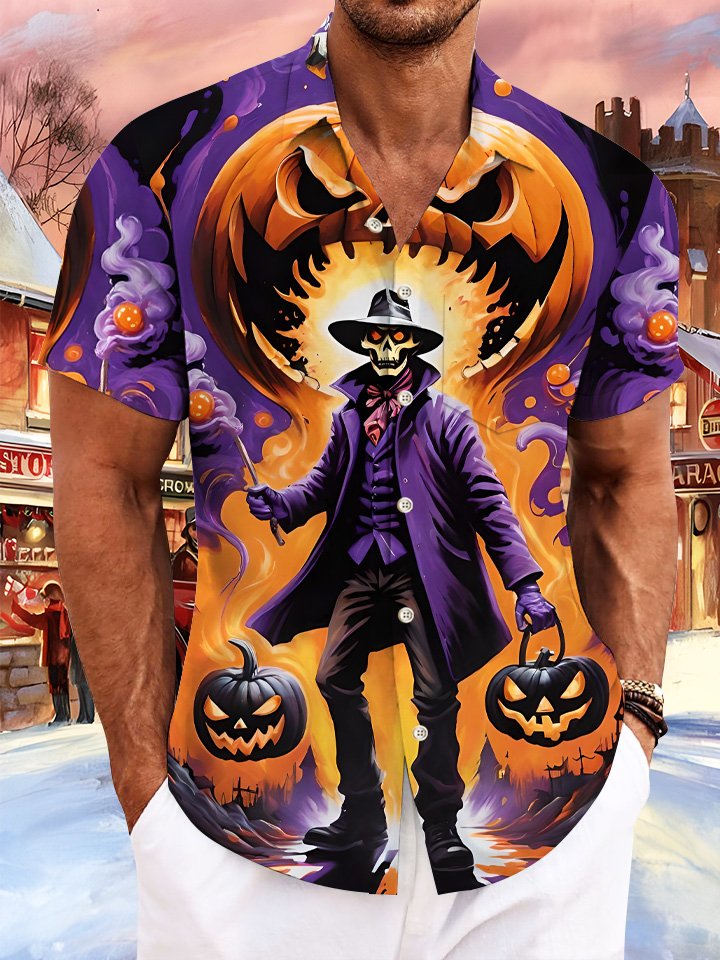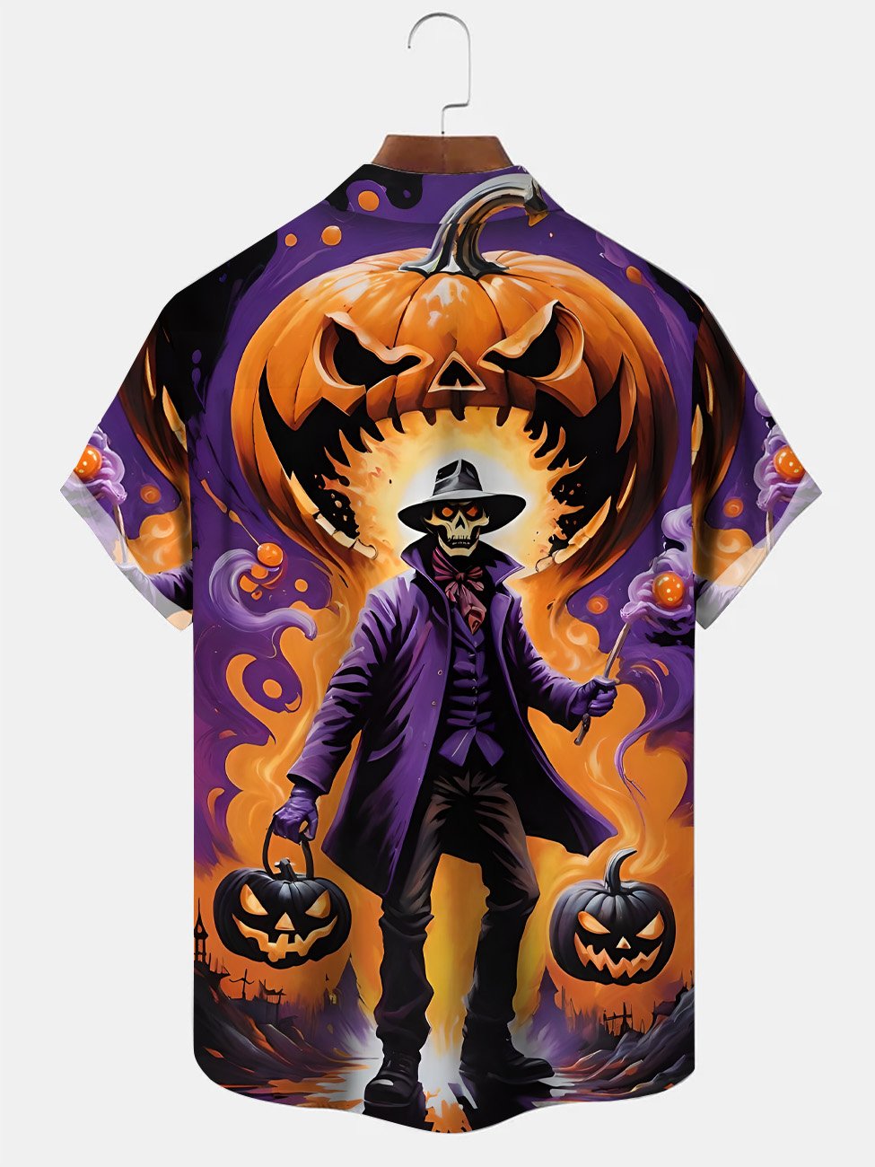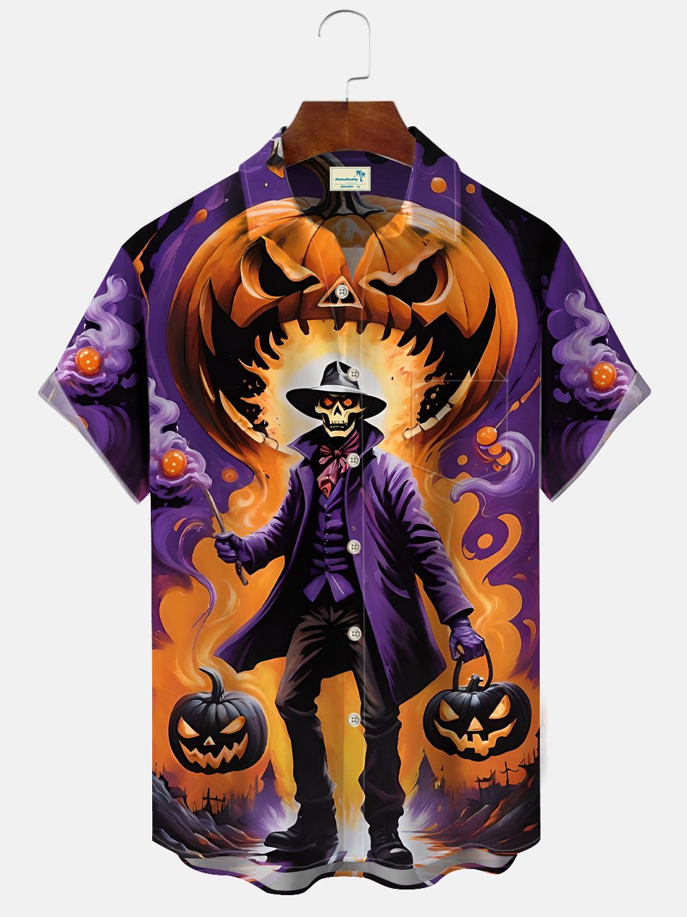 Alohadaddy Halloween Skull Button Pocket Casual Short Sleeve Shirt