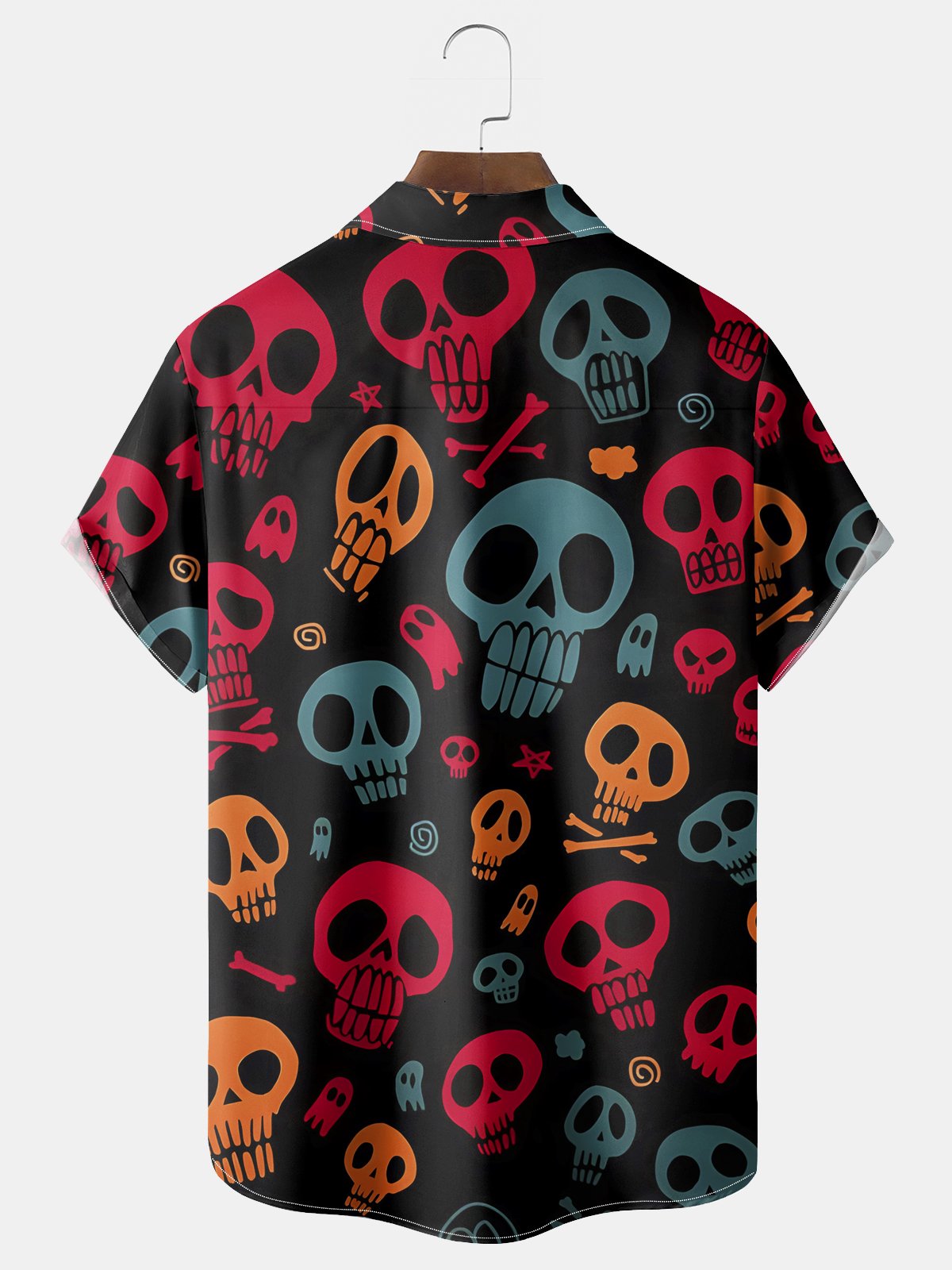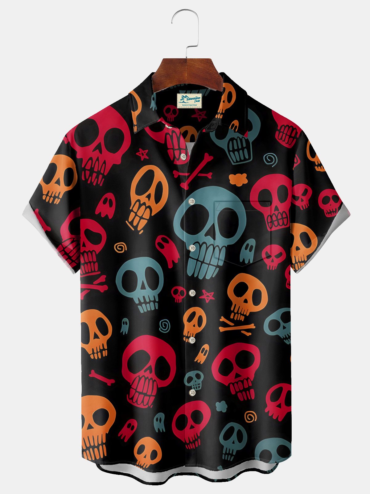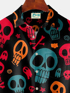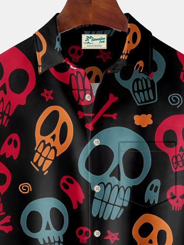 Alohadaddy Halloween Skull Print Men's Chest Pocket Stretch Shirt Big Tall