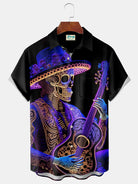 Alohadaddy Halloween Skull Print Men's Chest Pocket Stretch Shirt Big Tall