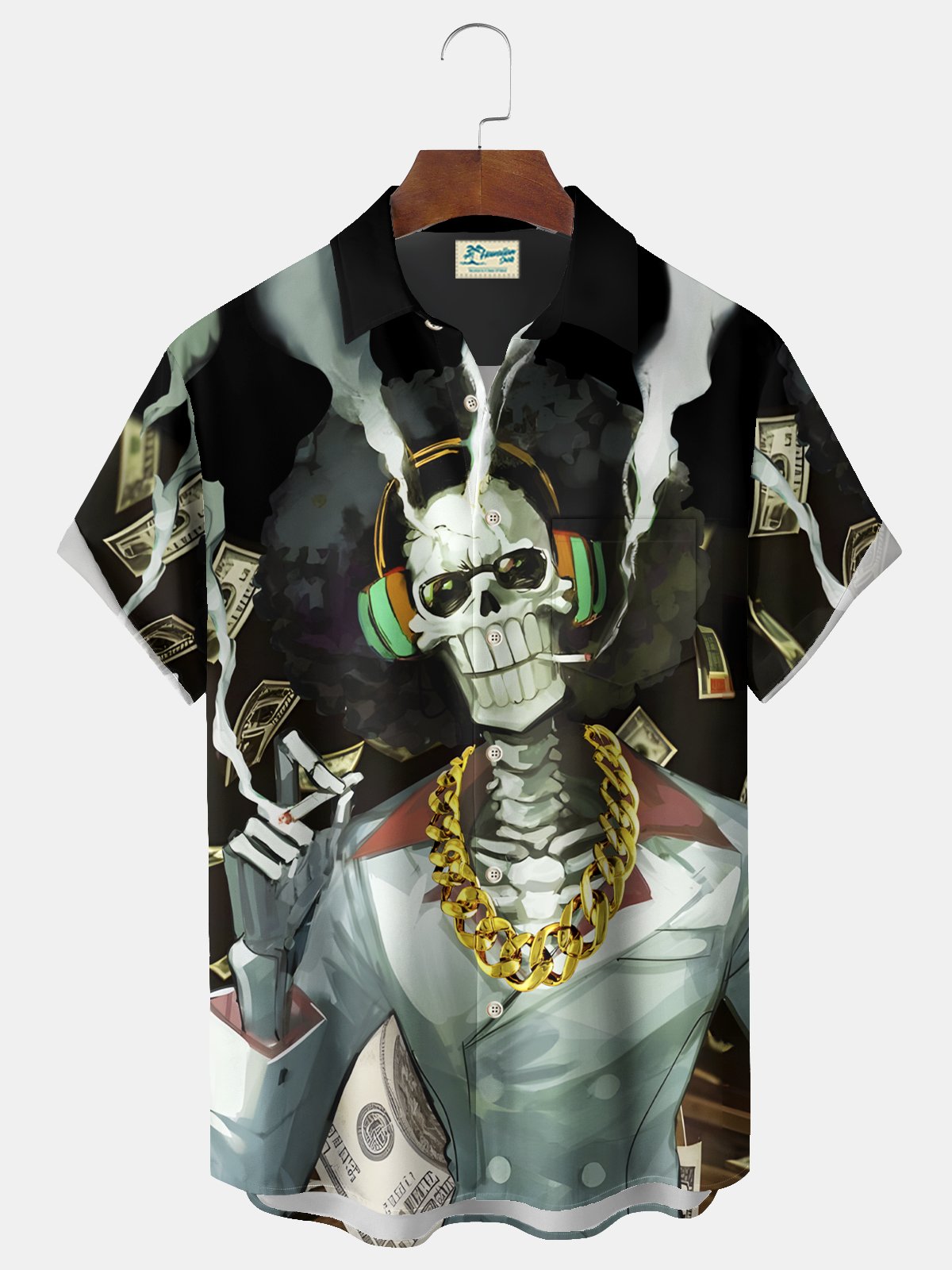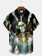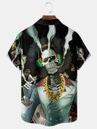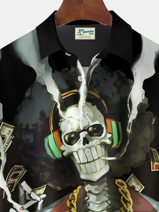 Alohadaddy Halloween Skull Print Men's Chest Pocket Stretch Shirt Big Tall