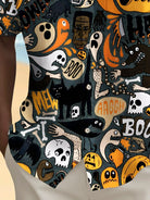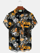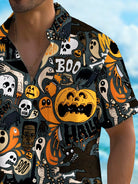 Alohadaddy Halloween Skull Pumpkin Cartoon Print Men's Chest Pocket Stretch Shirt Big Tall