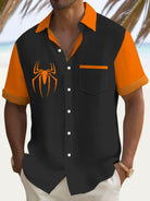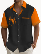 Alohadaddy Halloween Spider 3D Digital Print Men's Button Pocket Short Sleeve Shirt Big & Tall