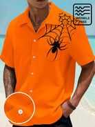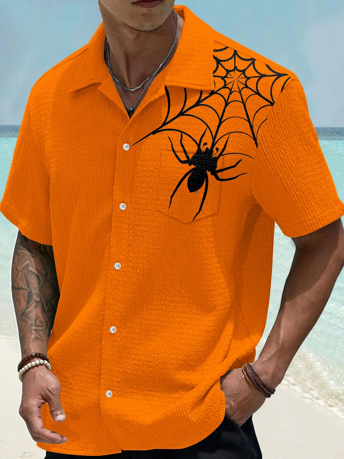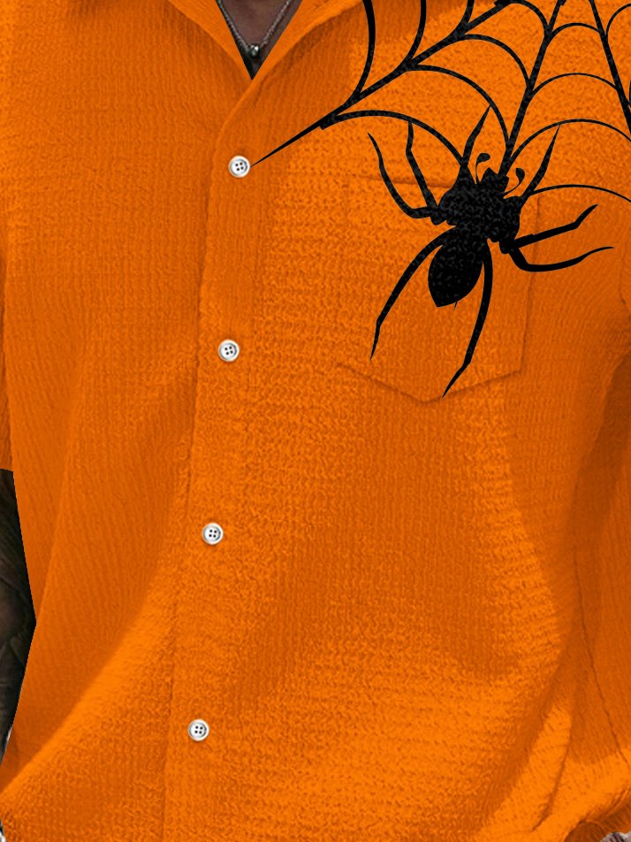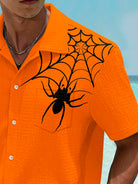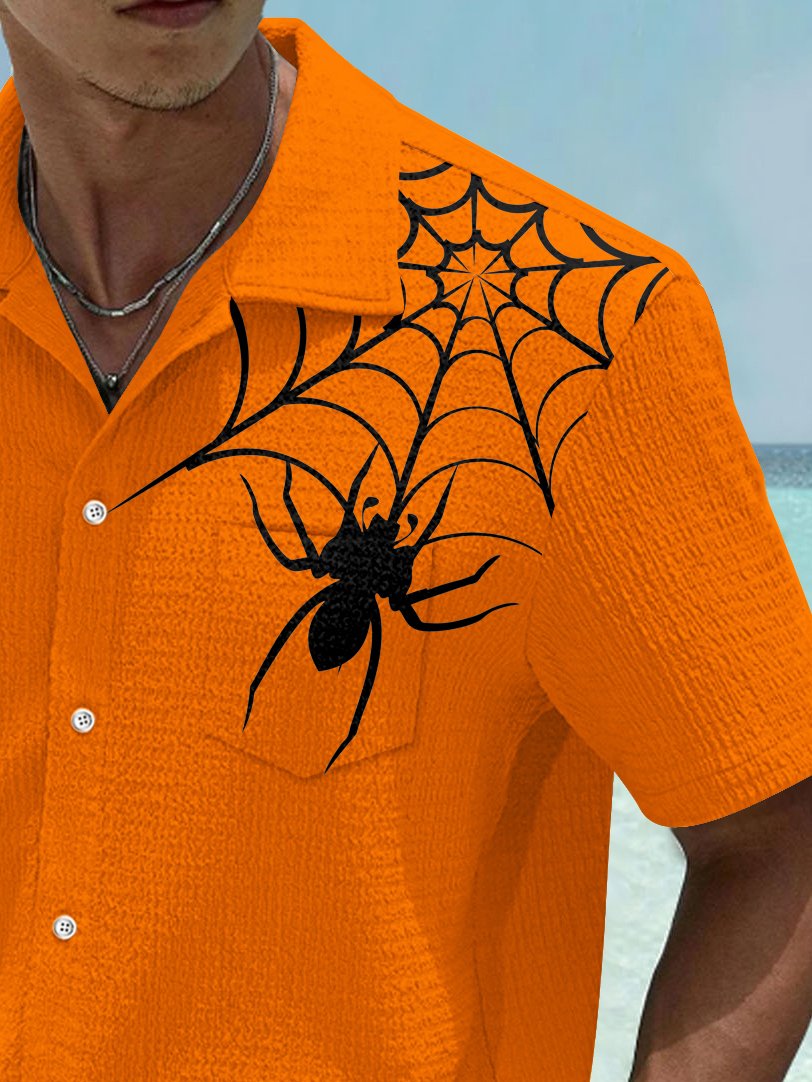 Alohadaddy Halloween Spider Print Men's Seersucker Stretch Shirt Big Tall