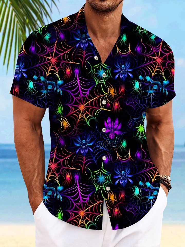 Alohadaddy Halloween Spider Web Pocket Button Casual Short Sleeve Shirt