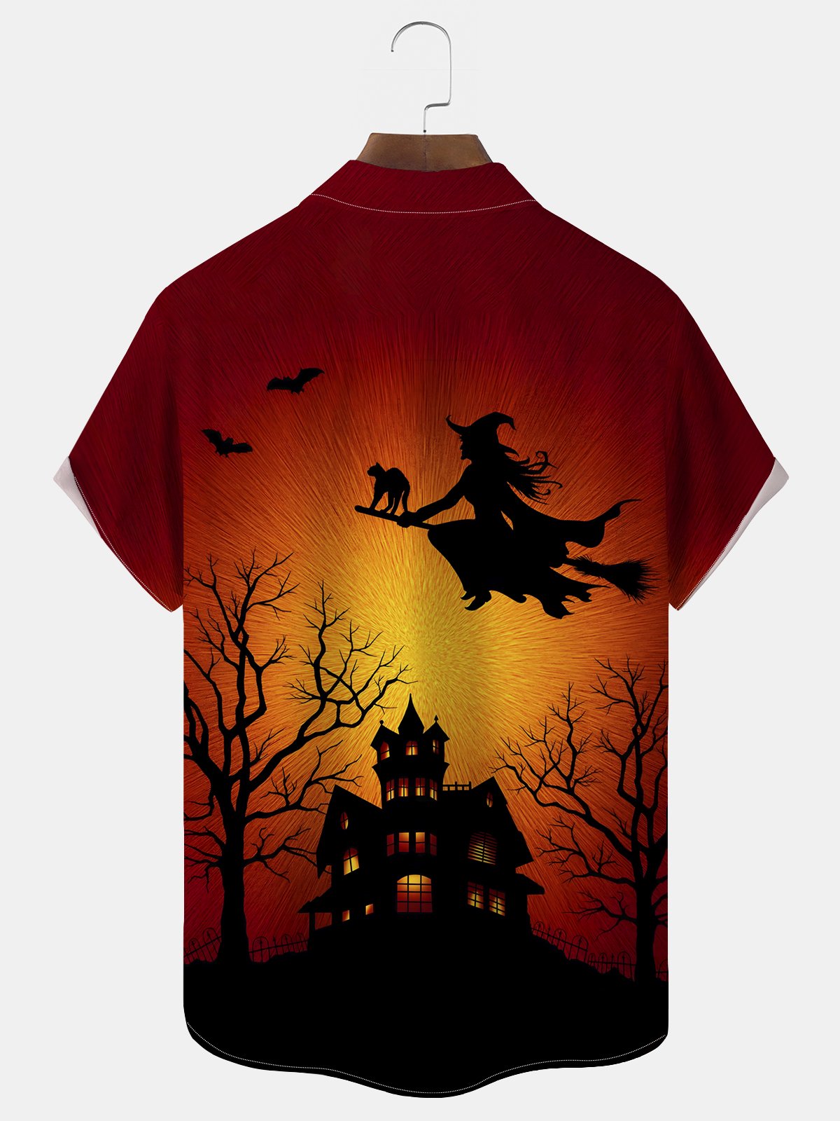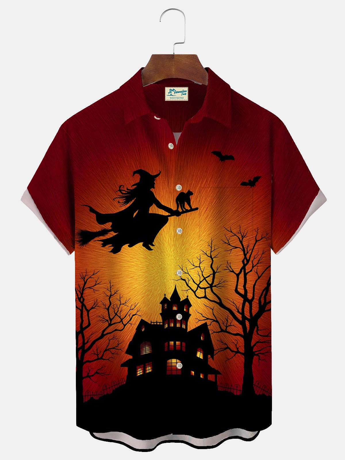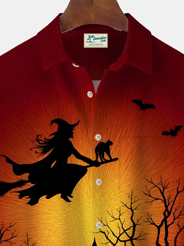 Alohadaddy Halloween Witch Print Men's Chest Pocket Stretch Shirt Big Tall