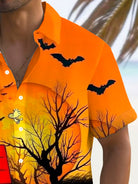 Alohadaddy Holiday Halloween Pumpkin Cartoon 3D Digital Print Men's Button Pocket Short Sleeve Shirt Big & Tall