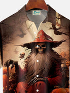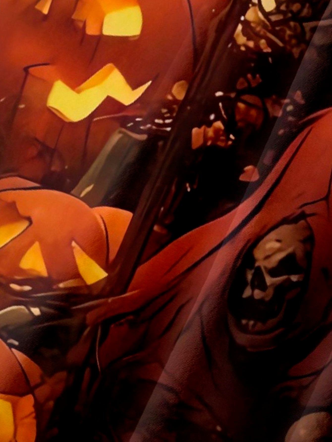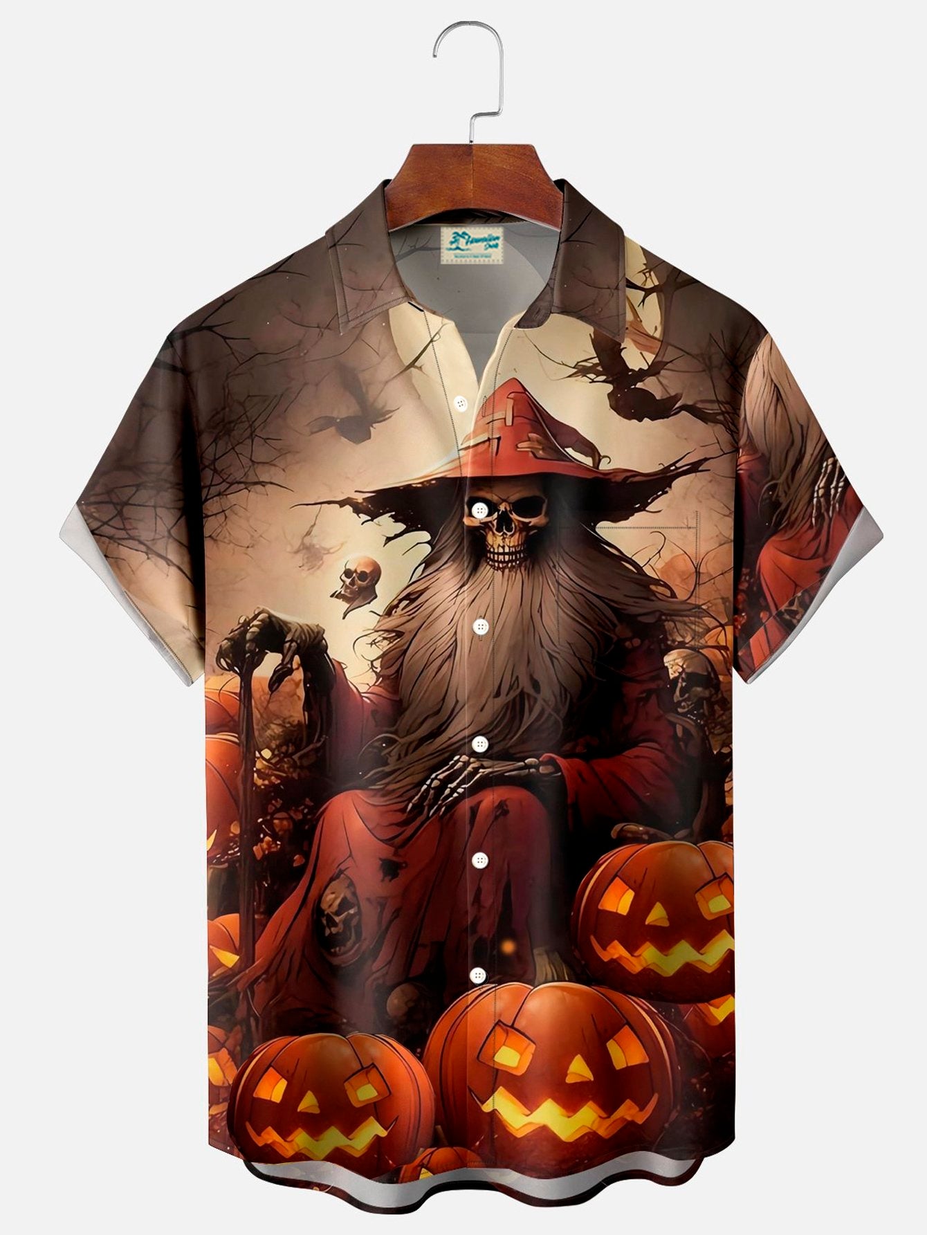 Alohadaddy Holiday Halloween Pumpkin Grim Reaper 3D Digital Print Men's Button Pocket Short Sleeve Shirt Big & Tall