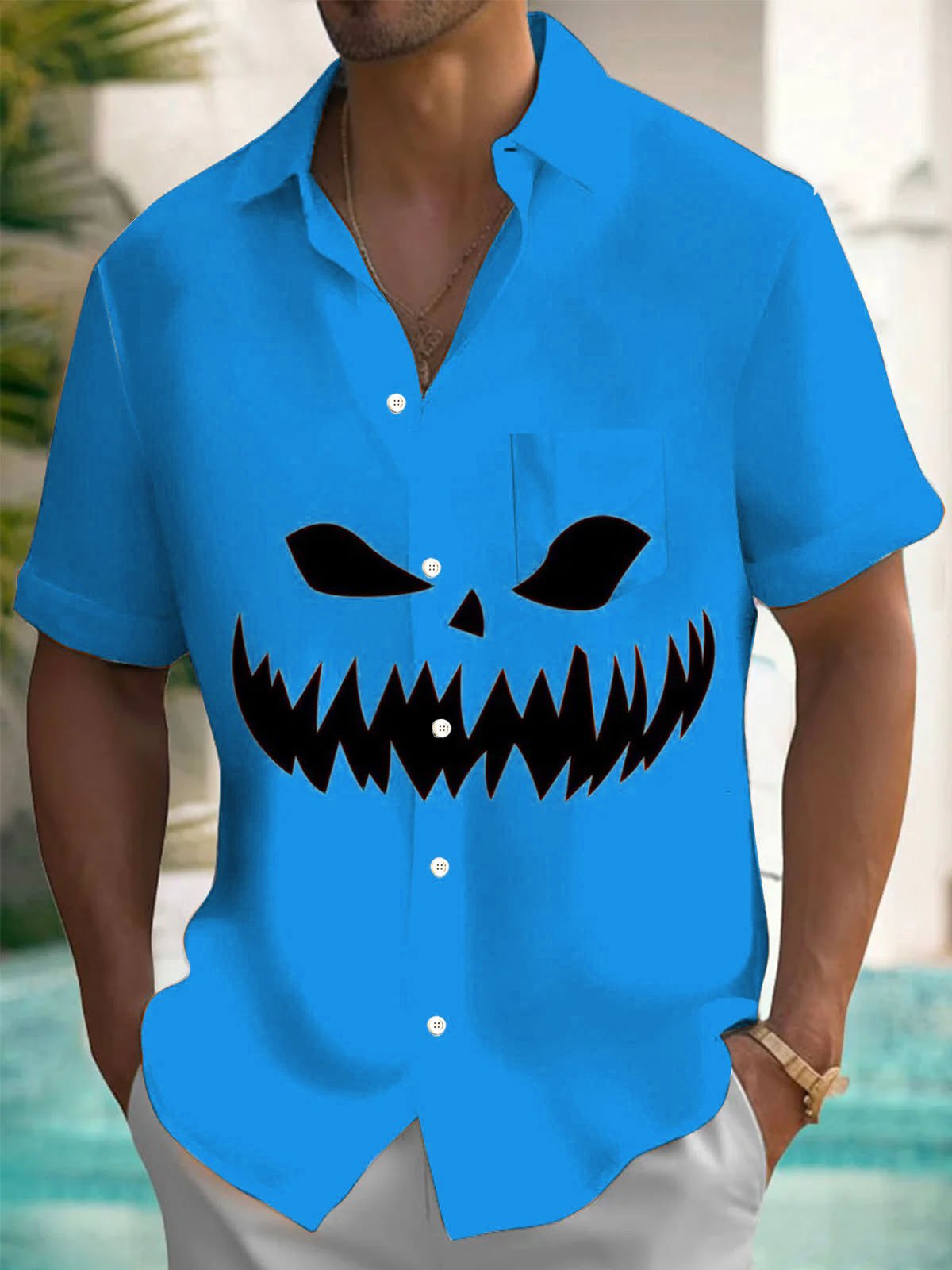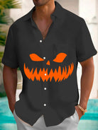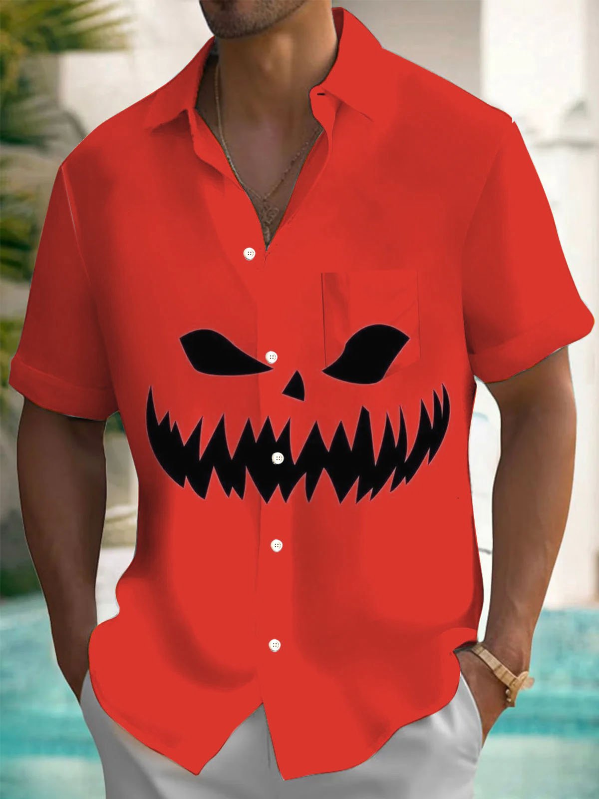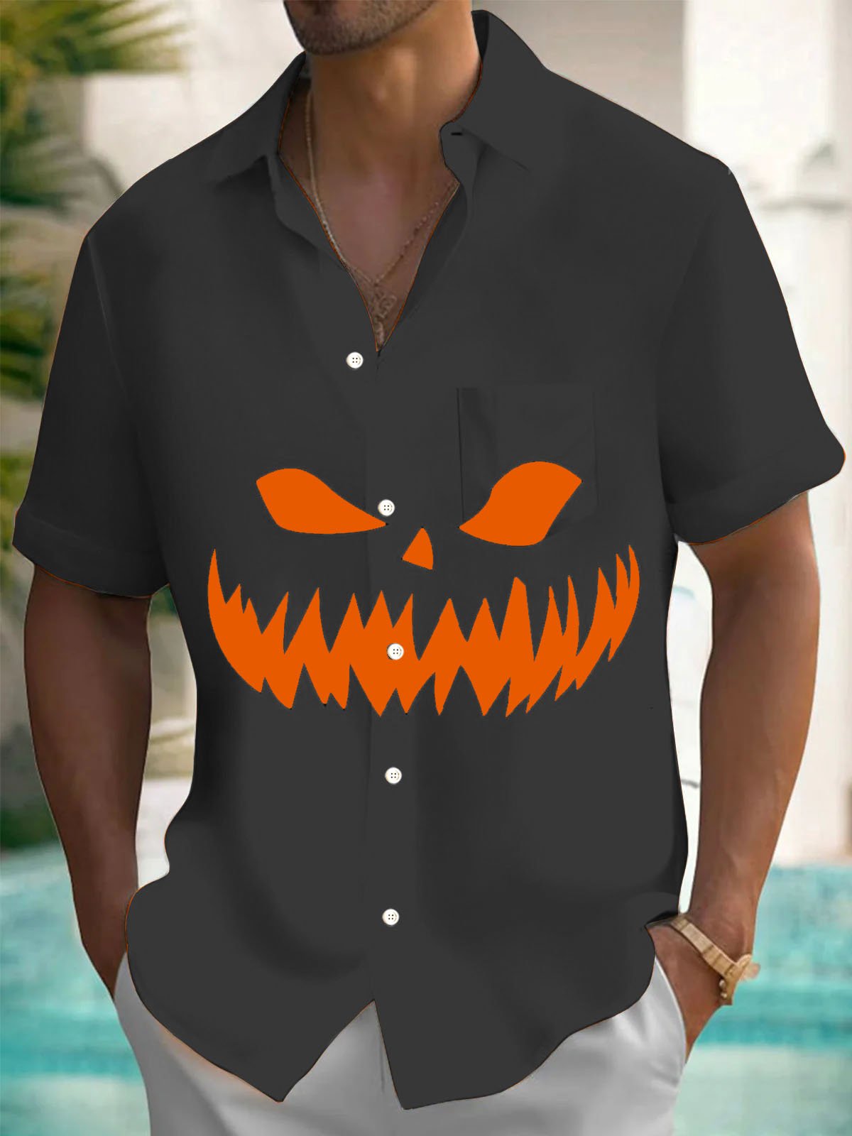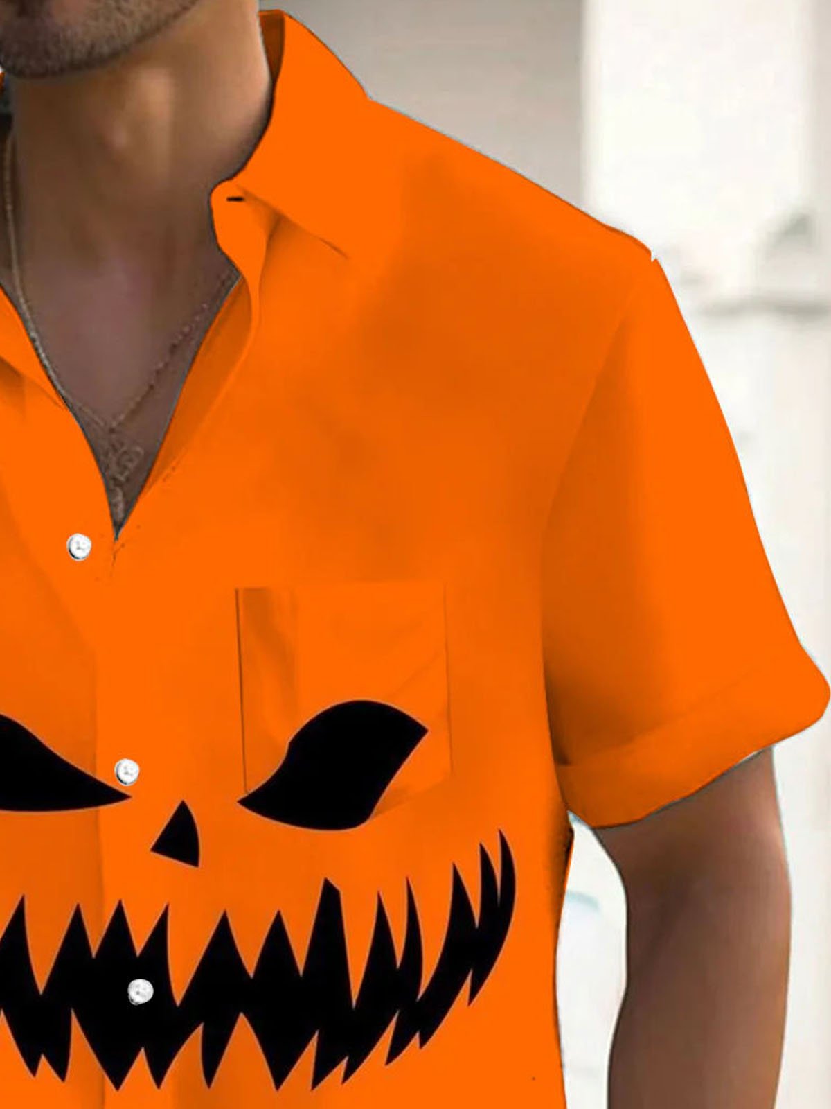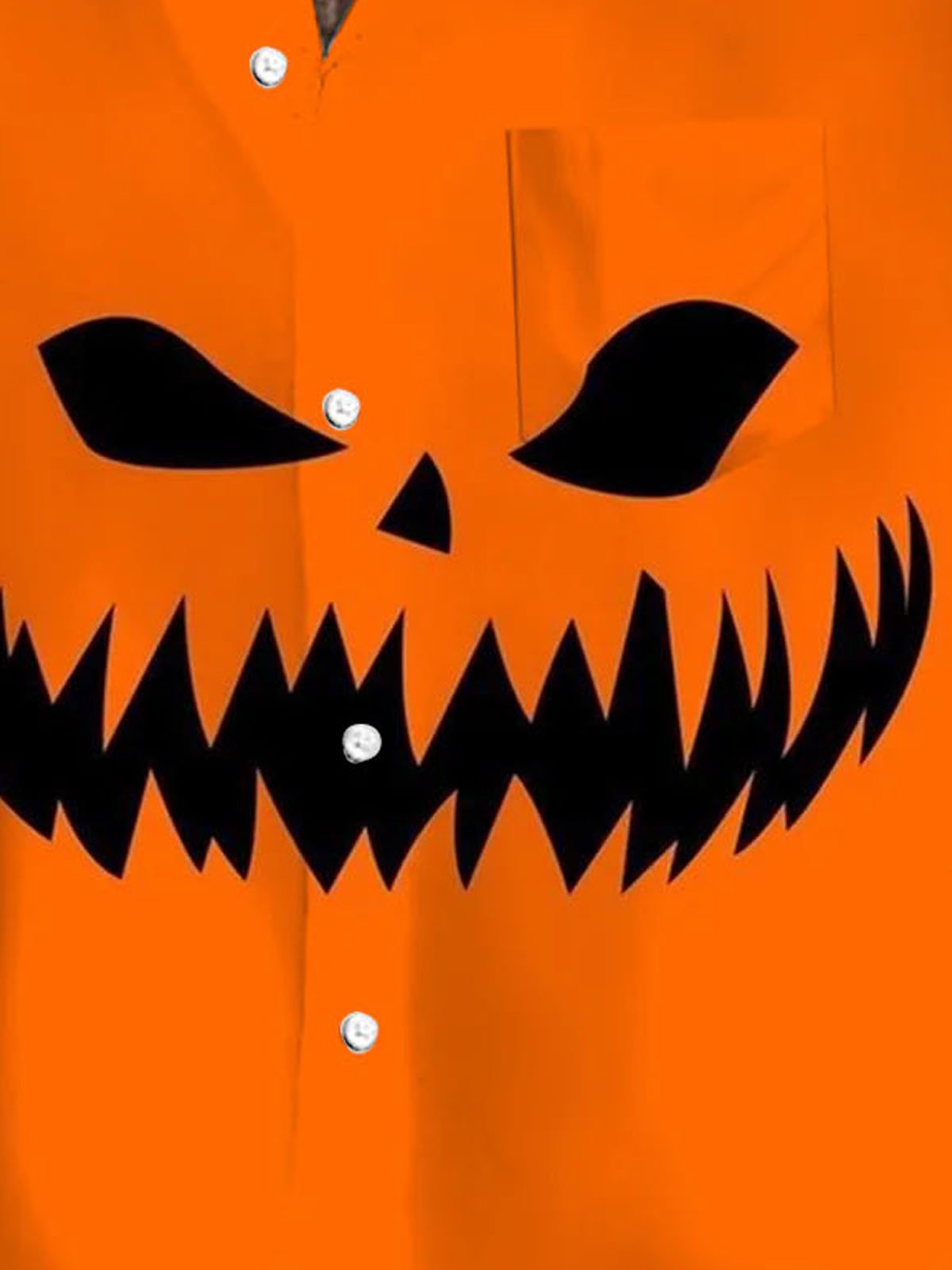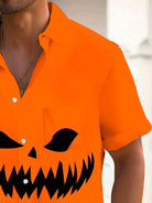 Alohadaddy Retro Halloween Pumpkin 3D Digital Print Men's Button Pocket Short Sleeve Shirt Big & Tall