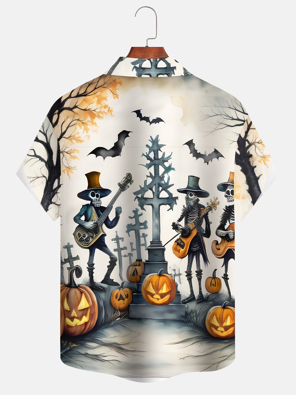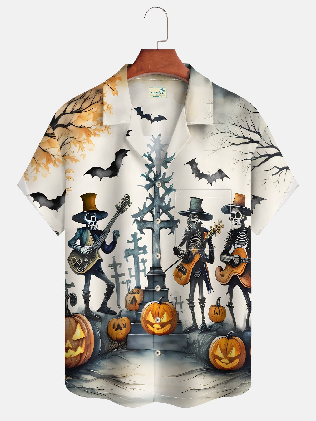 Alohadaddy Retro Halloween Skull Pumpkin 3D Digital Print Men's Button Pocket Short Sleeve Shirt Camp Shirt