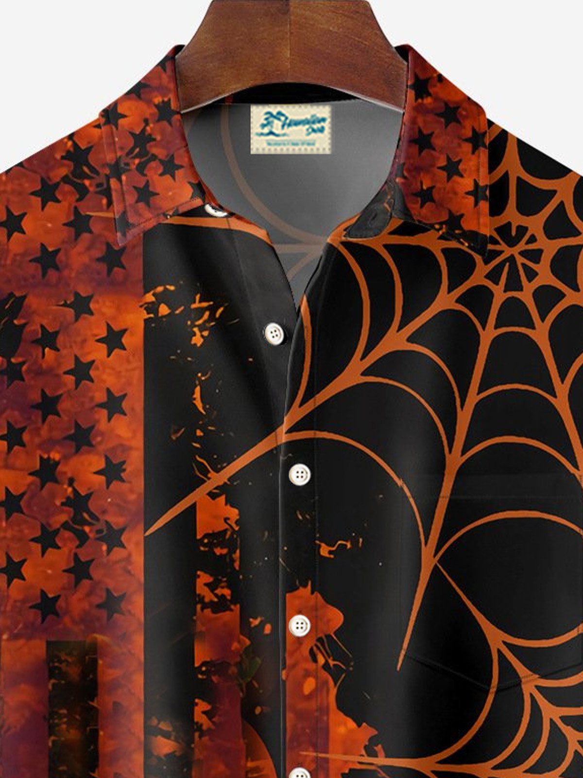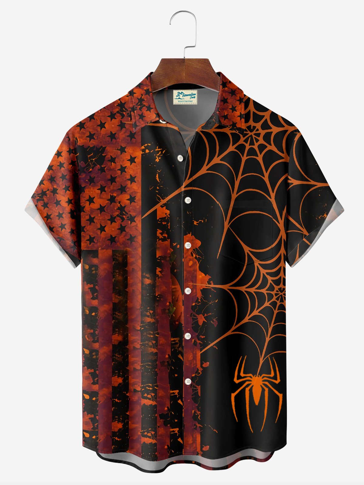 Alohadaddy Retro Halloween Spider 3D Digital Print Men's Button Pocket Short Sleeve Shirt Big & Tall
