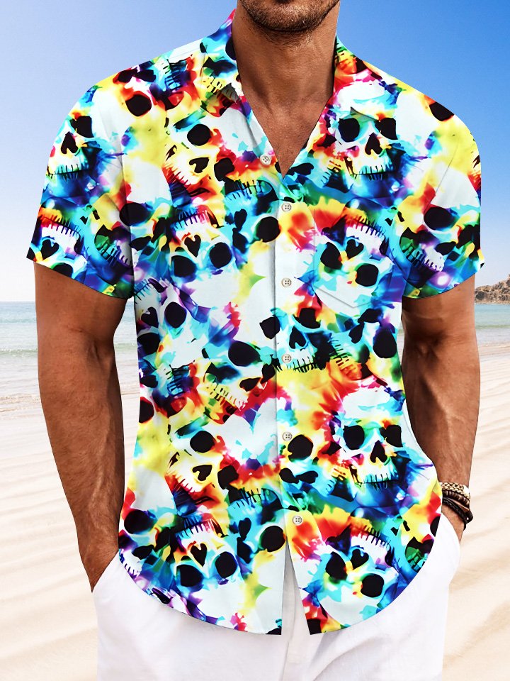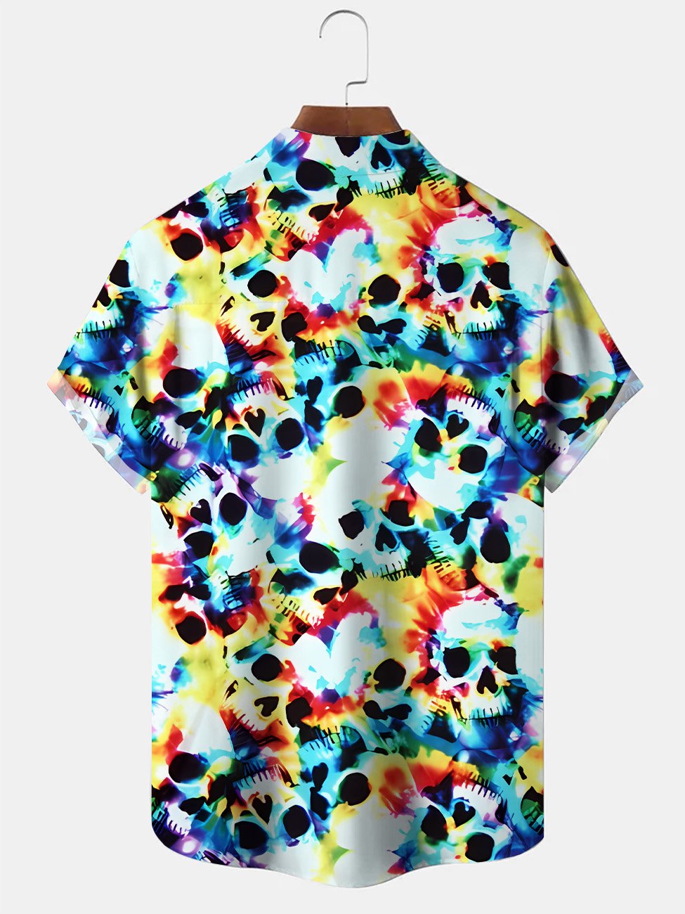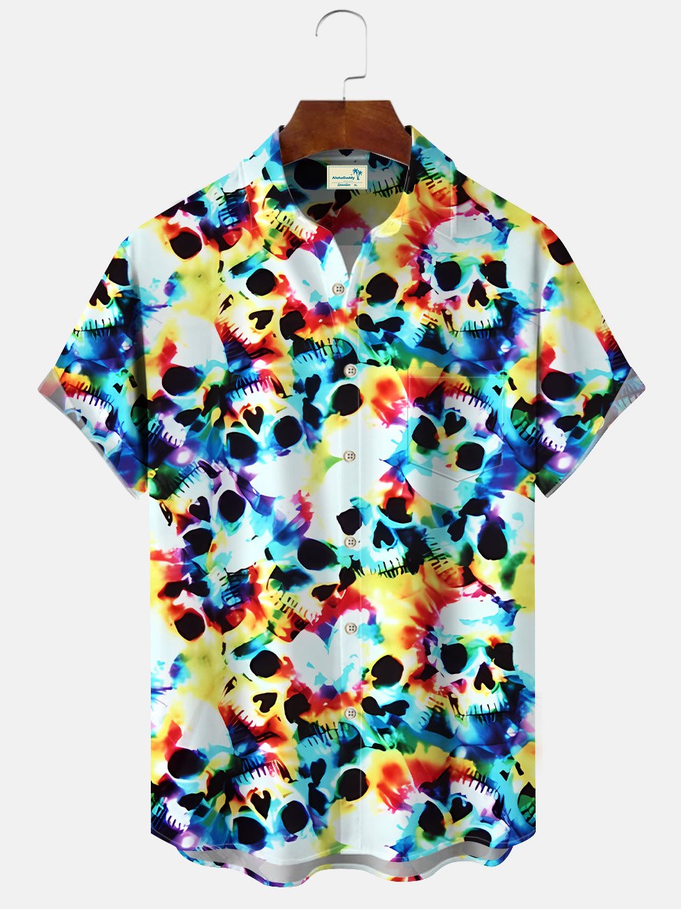Alohadaddy Skull Button Pocket Casual Short Sleeve Shirt
