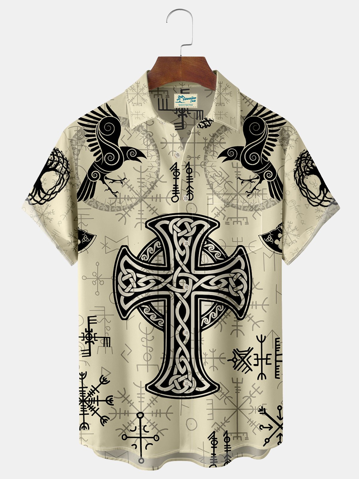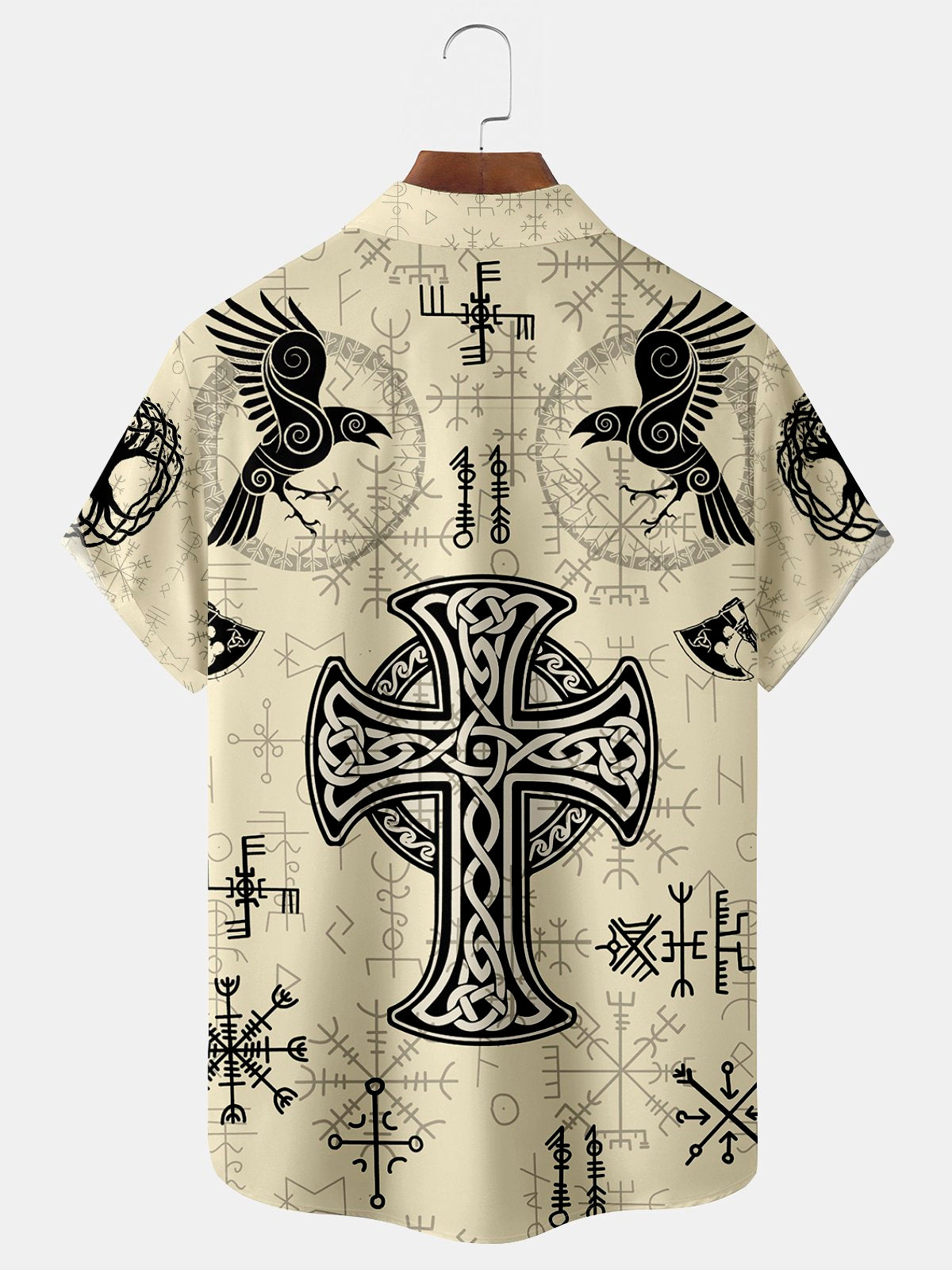 Alohadaddy Viking Too Many Idiots Not Enough Axes Print Beach Men's Hawaiian Oversized Shirt with Pockets