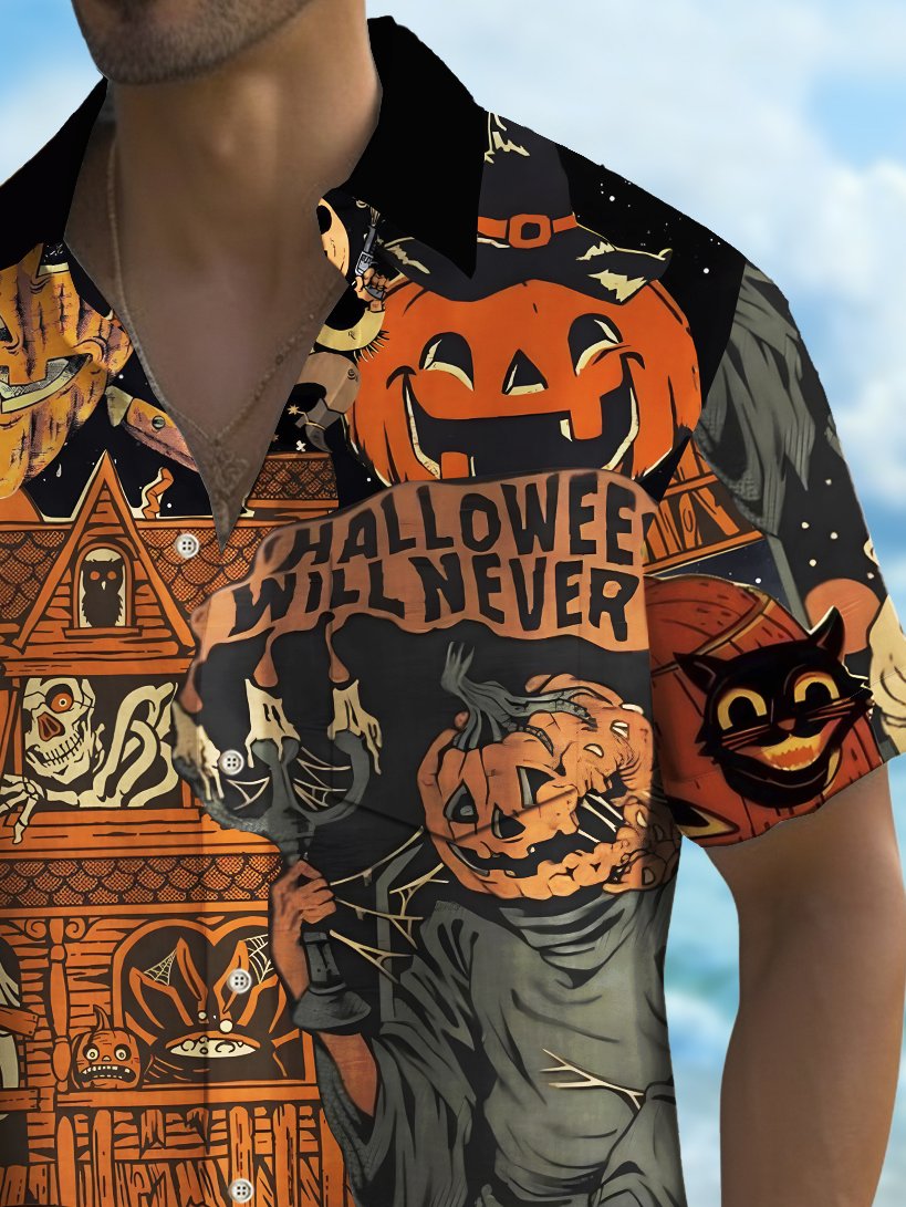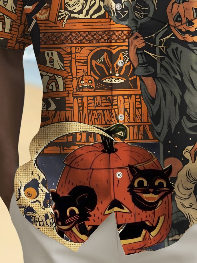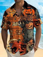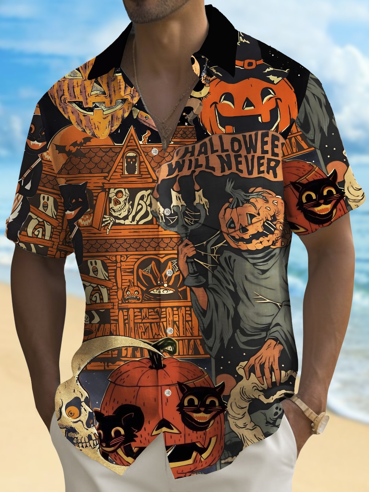 Alohadaddy Vintage Halloween Poster Print Men's Chest Pocket Stretch Shirt Big Tall