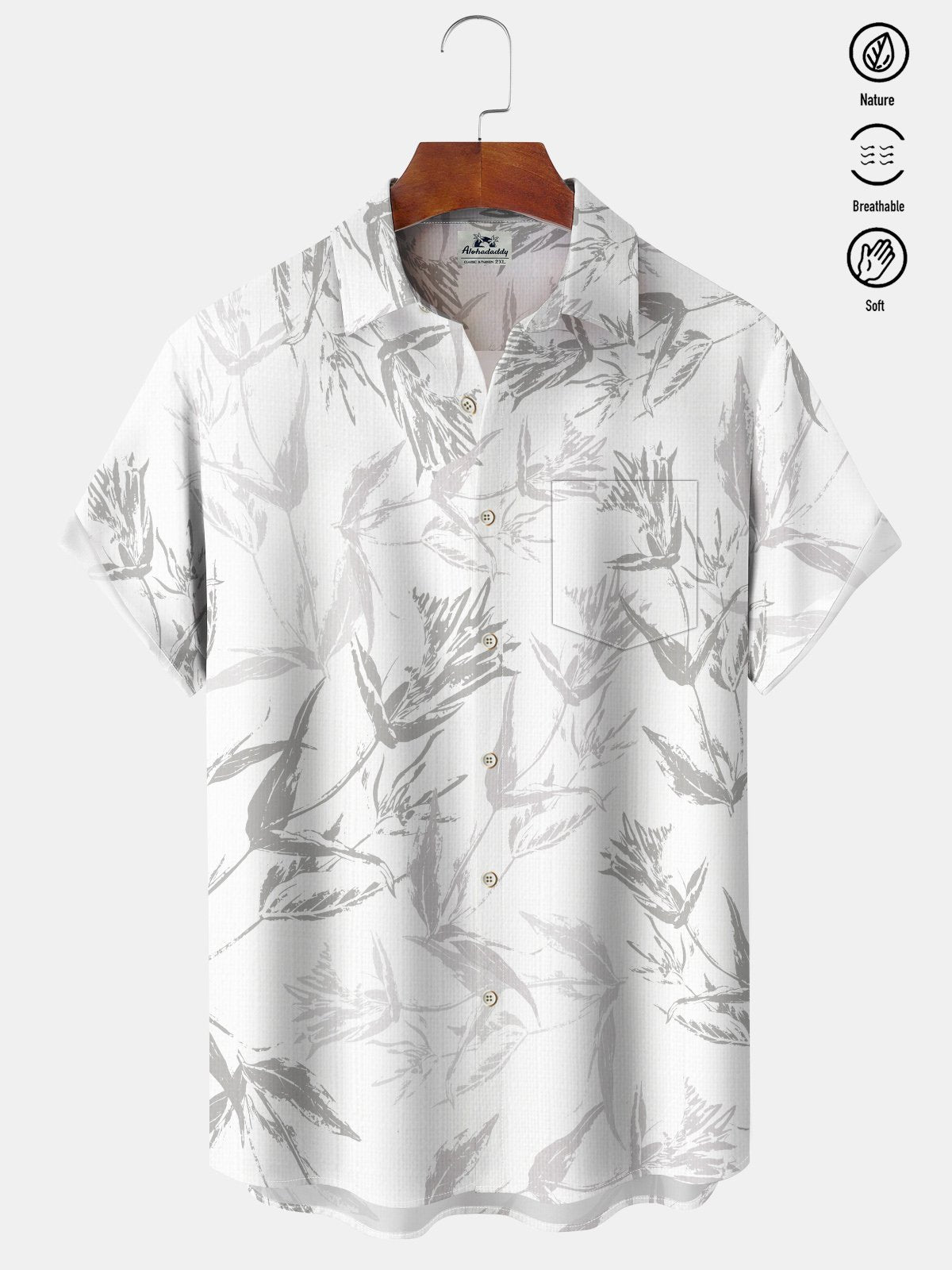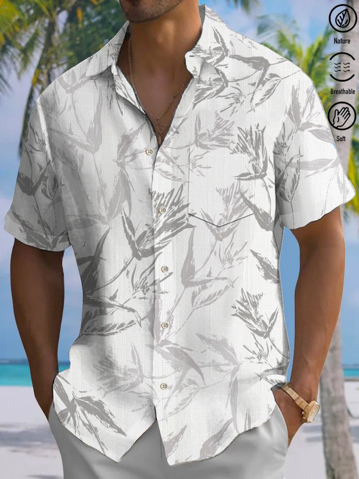 Alohadaddy® Casual Floral Resort Art Print Chest Pocket Moisture Wicking Large Size Hawaiian Shirt