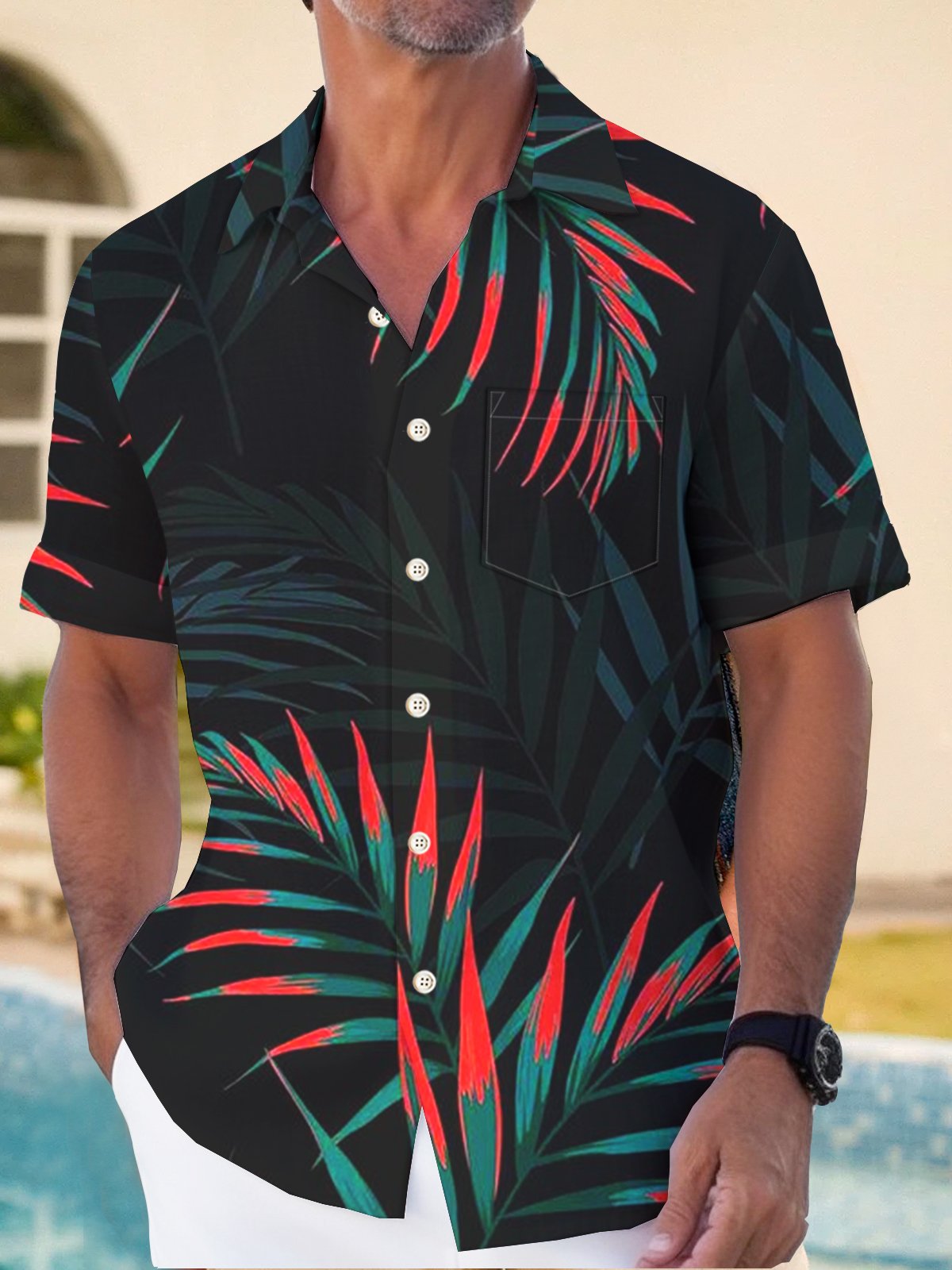 Alohadaddy Coconut Leaf Resort Beach Men's Printed Oversized Stretch Beach Camping Shirt