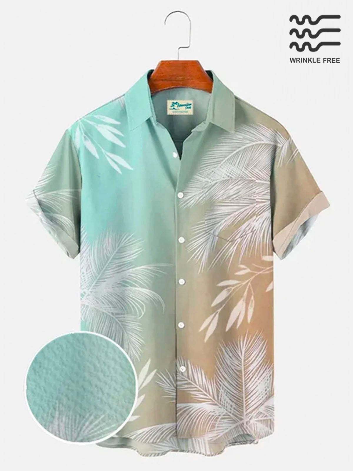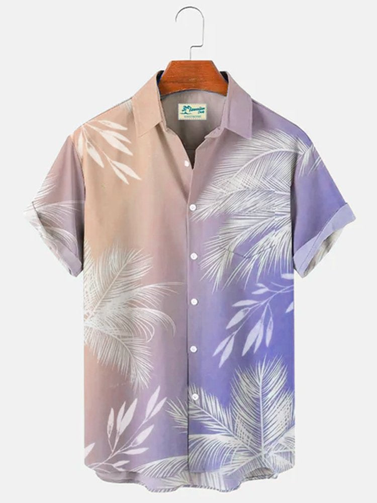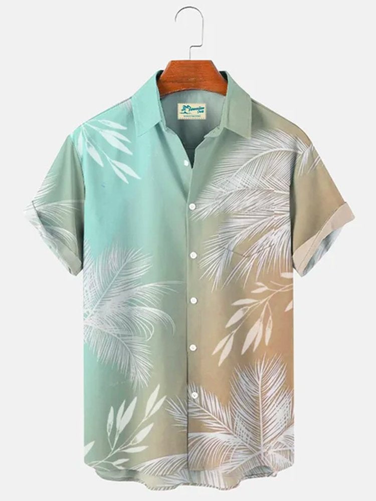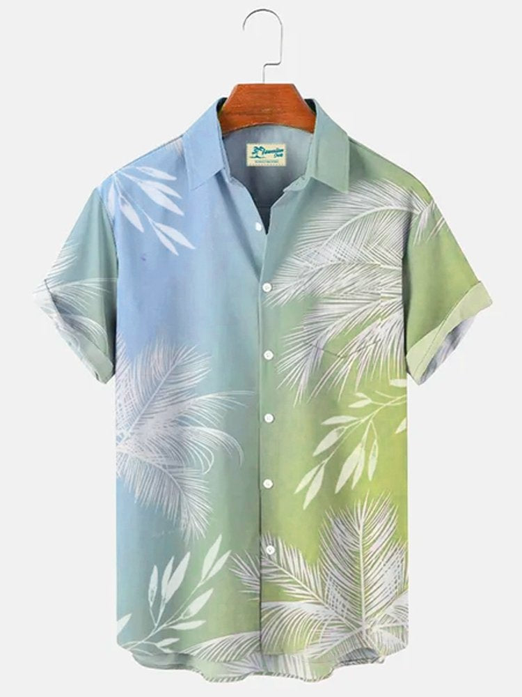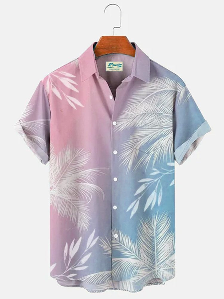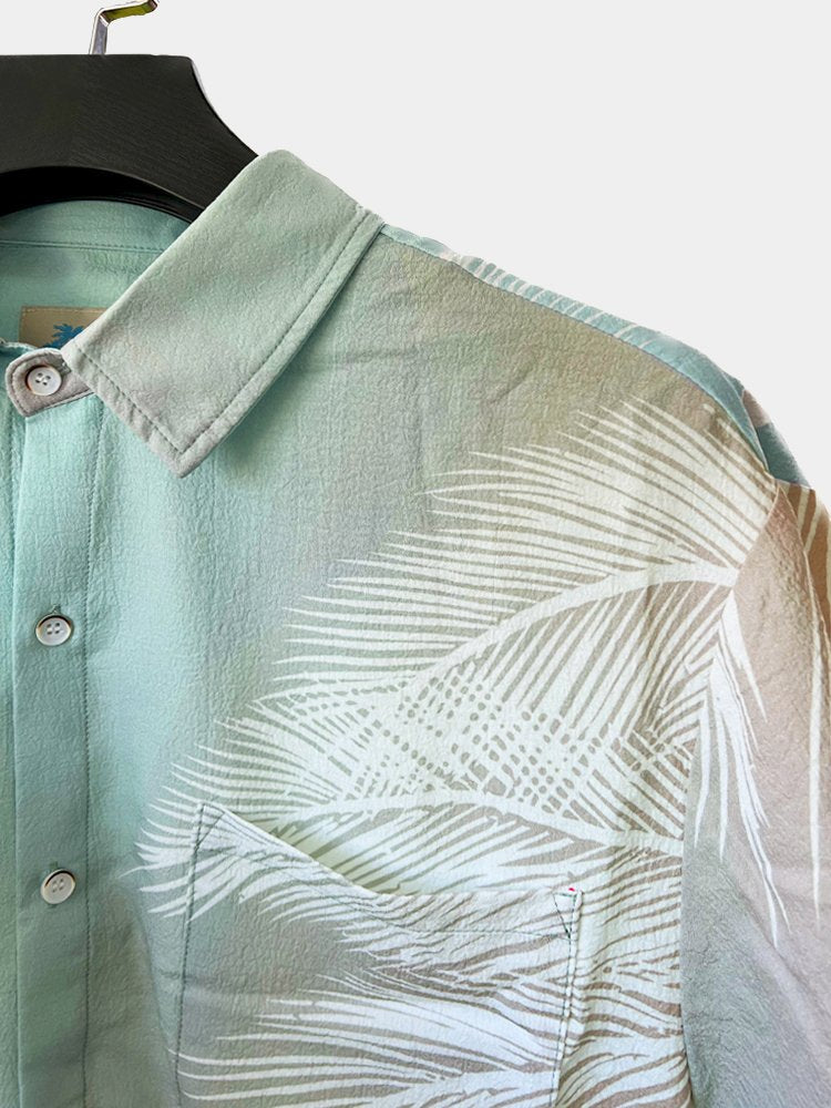 Multicolor Men's Vacation Gradient Hawaiian Short Sleeve Seersucker Wrinkle Resistant Shirt Top