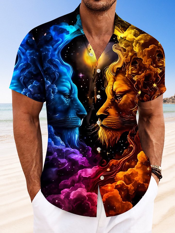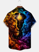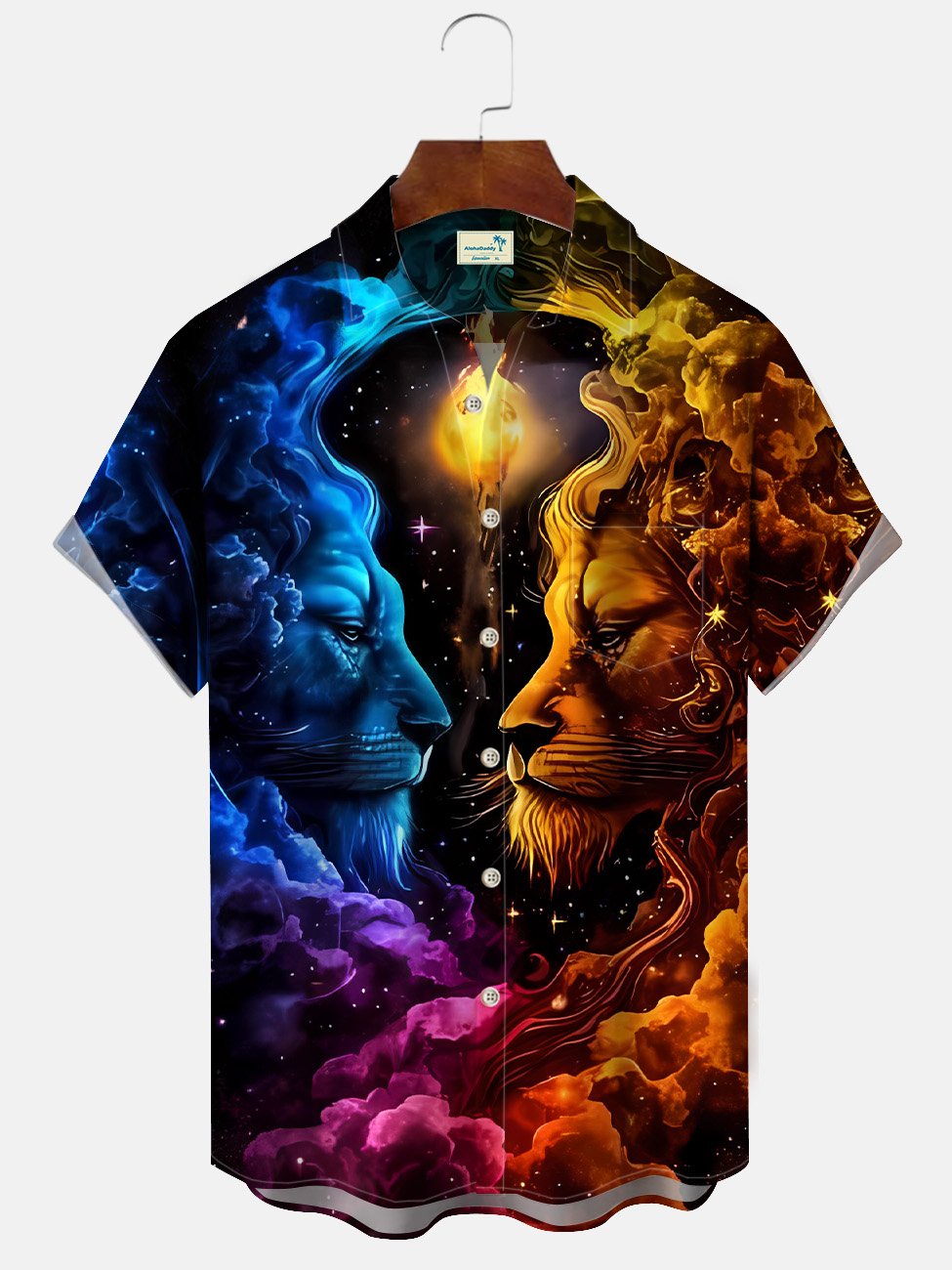 Alohadaddy Animal Lion Fluorescent Pocket Button Casual Short Sleeve Shirt