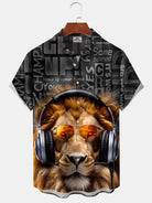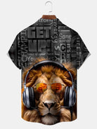 Alohadaddy Casual Letters Lion Print Art Pockets Buttons Elastic Large Size Shirt