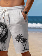 Alohadaddy Lion Coconut Tree Print Men's Drawstring Beach Shorts Casual Shorts