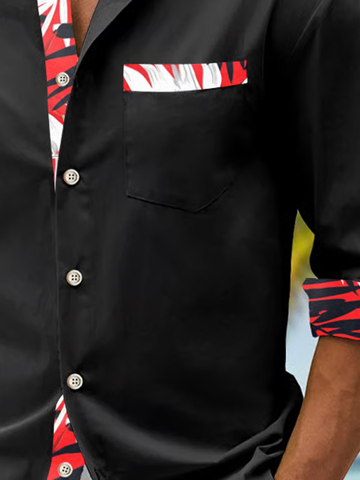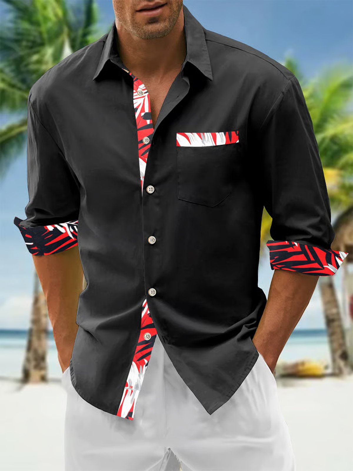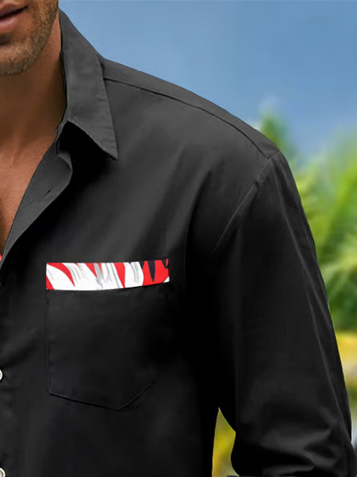 Alohadaddy® Basic Solid Color Floral Long Sleeve Pocket Shirt