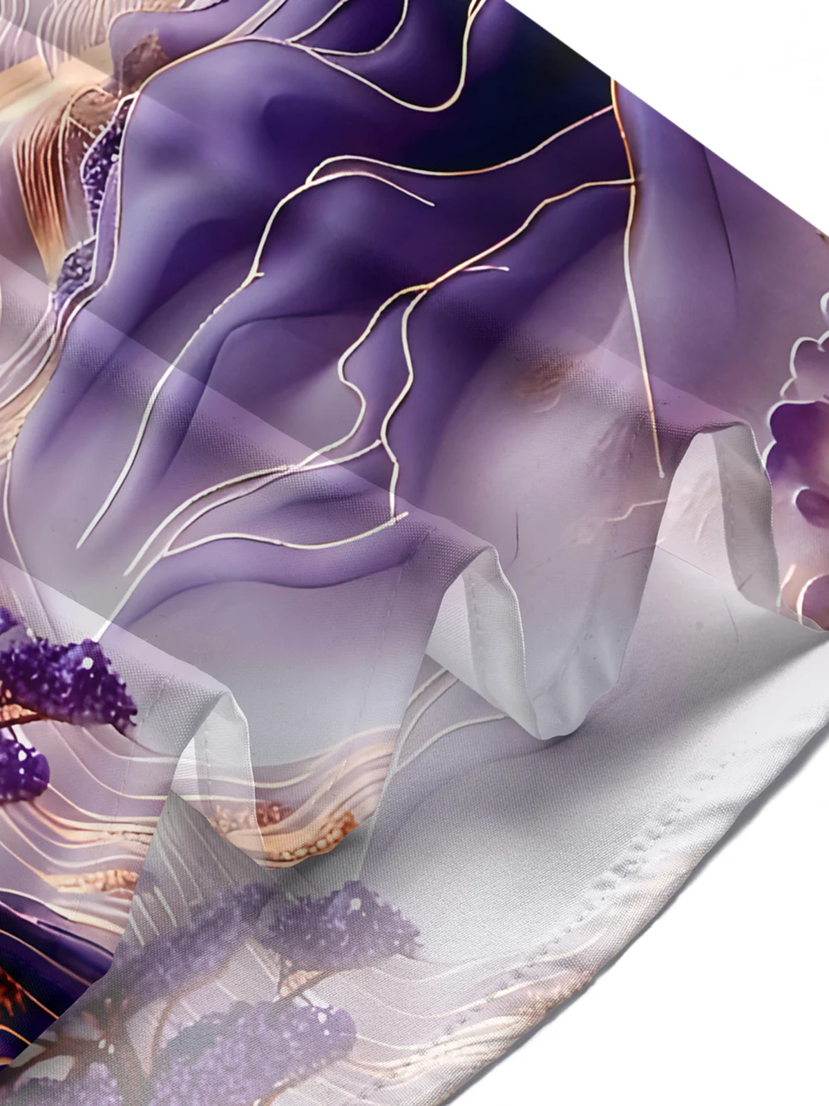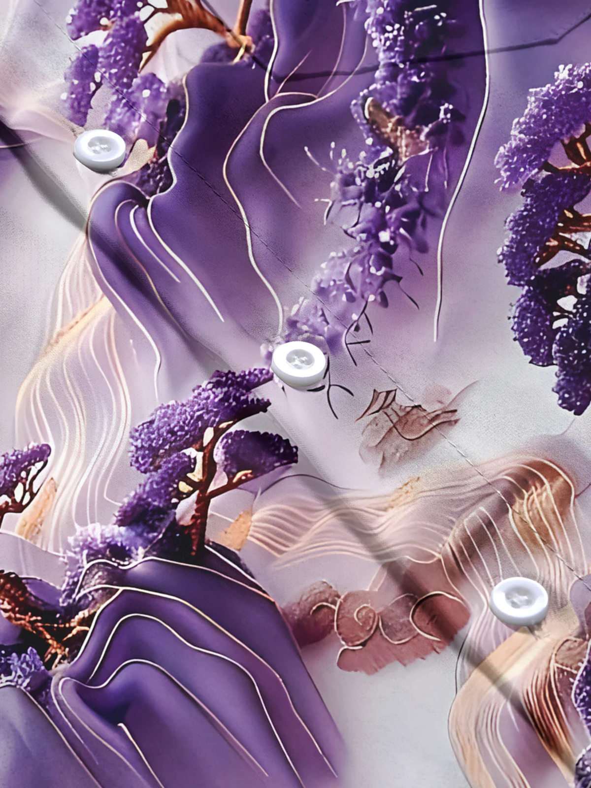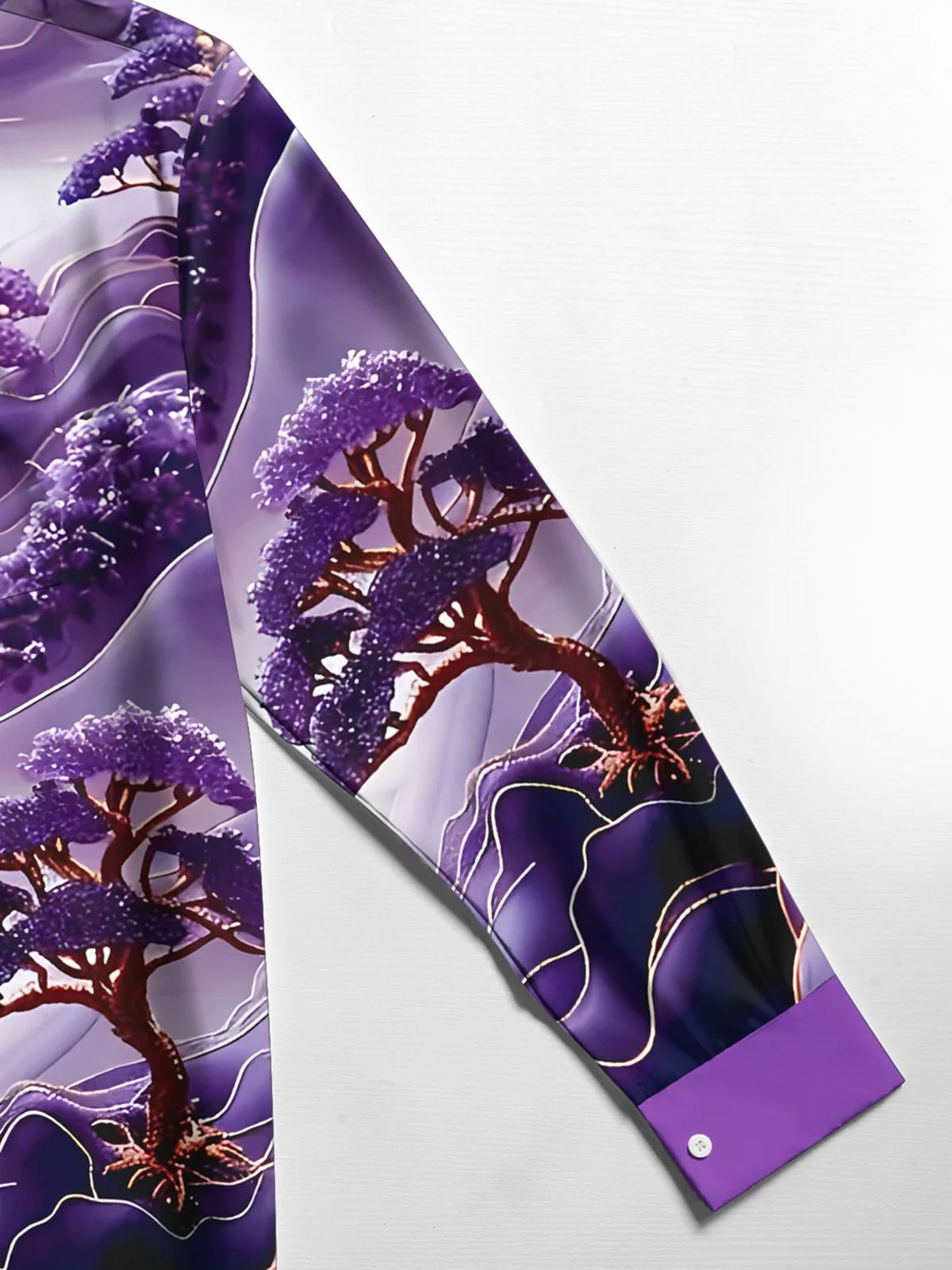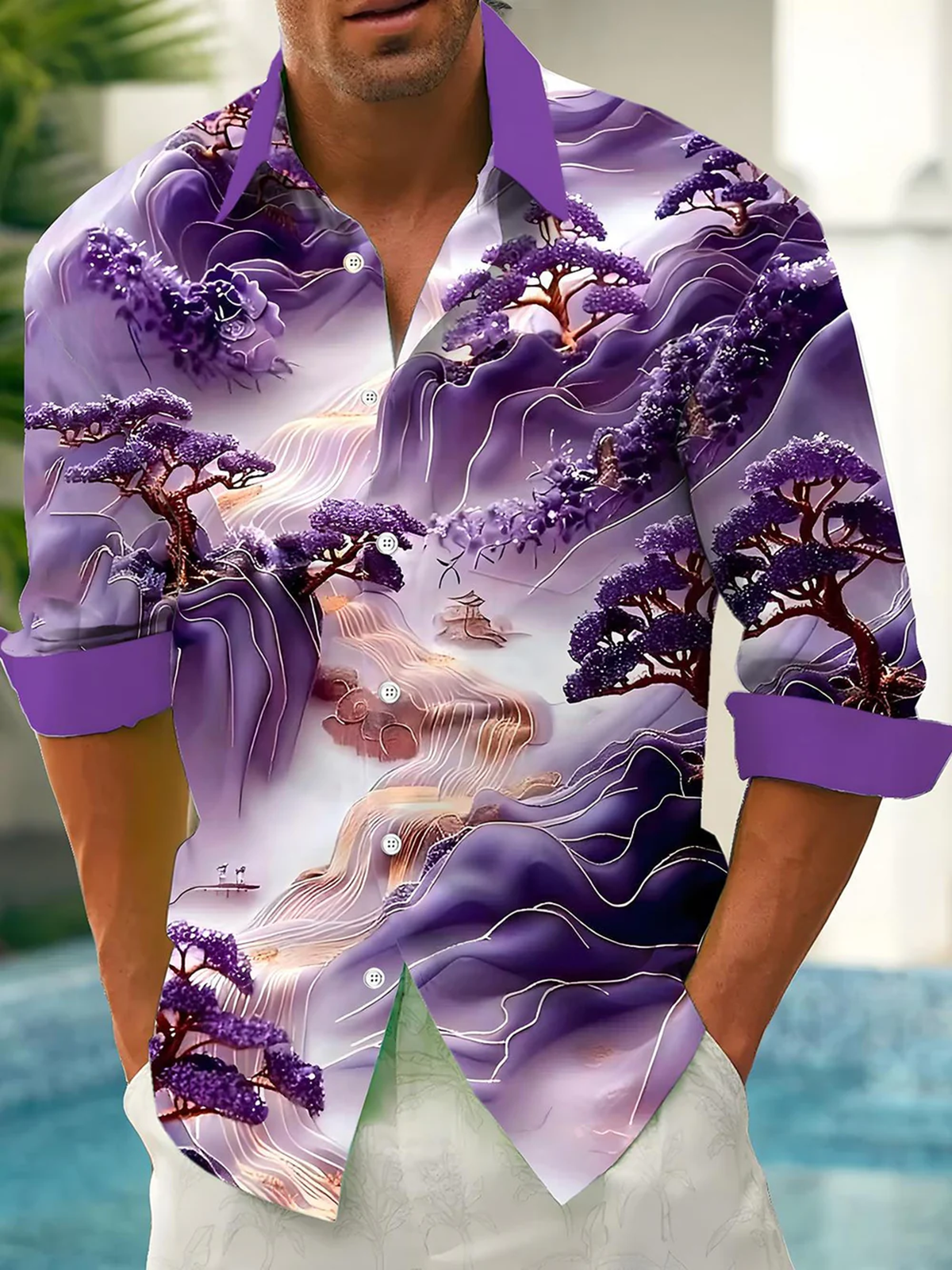 Alohadaddy® Vintage Casual Painting Art Print Chest Pocket Men's Long Sleeve Shirt Big & Tall