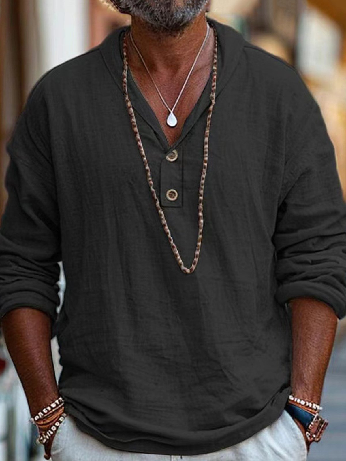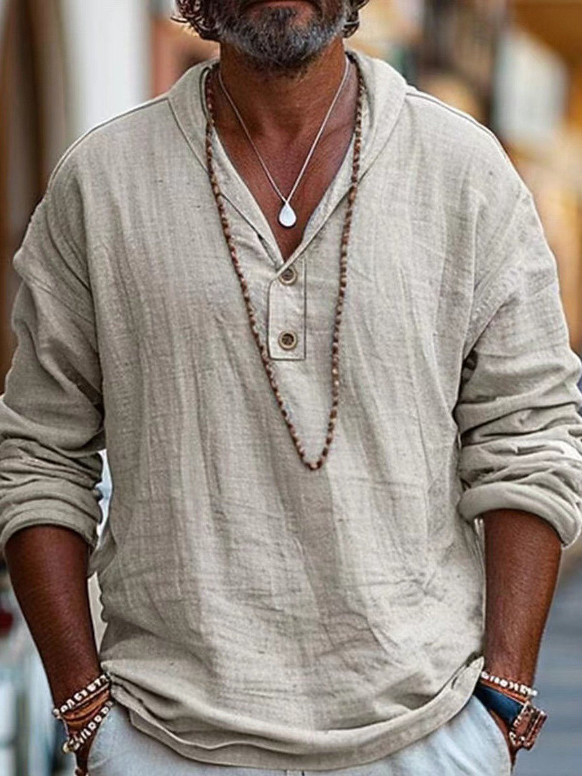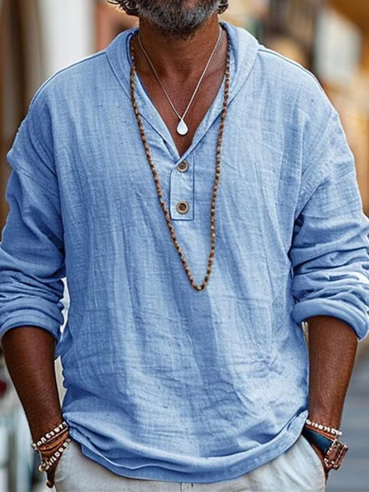 Alohadaddy® Vintage Cotton and Linen Moisture Wicking Versatile Chest Pocket Men's Long Sleeve POLO Shirt Big & Tall
