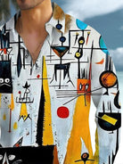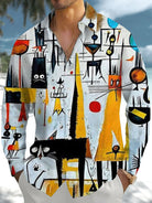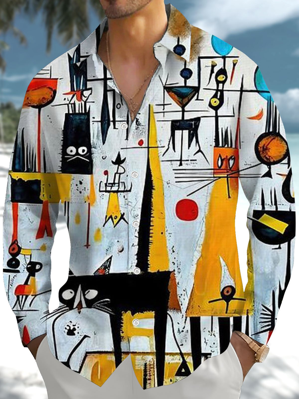 Alohadaddy® Vintage Geometric Cat Print Pocket Stretch Men's Long Sleeve Shirt Big & Tall