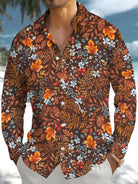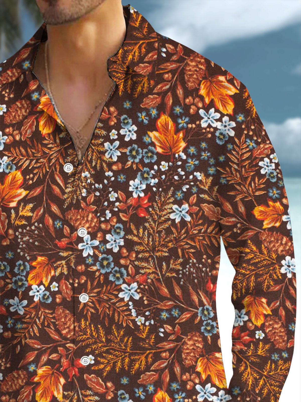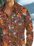 Alohadaddy® Vintage Leaf Print Art Pocket Stretch Men's Long Sleeve Shirt Big & Tall