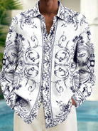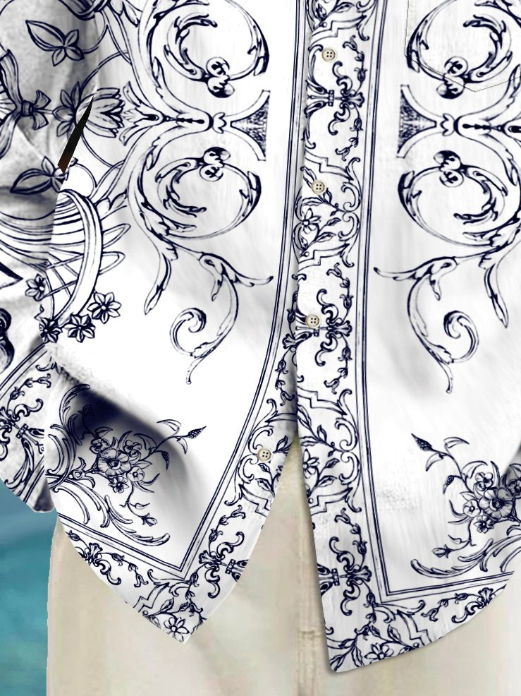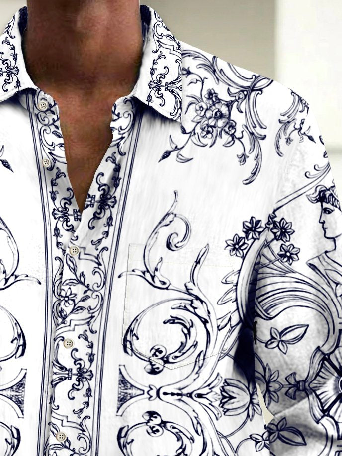 Alohadaddy Vintage Baroque Palace Style Printed Chest Pocket Men's Long Sleeve Shirt Big Tall