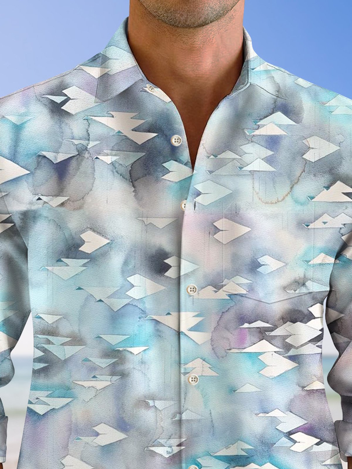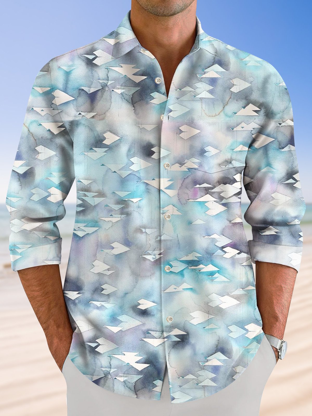 Alohadaddy Vintage Gradient Pocket Button Casual Long Sleeve Shirt