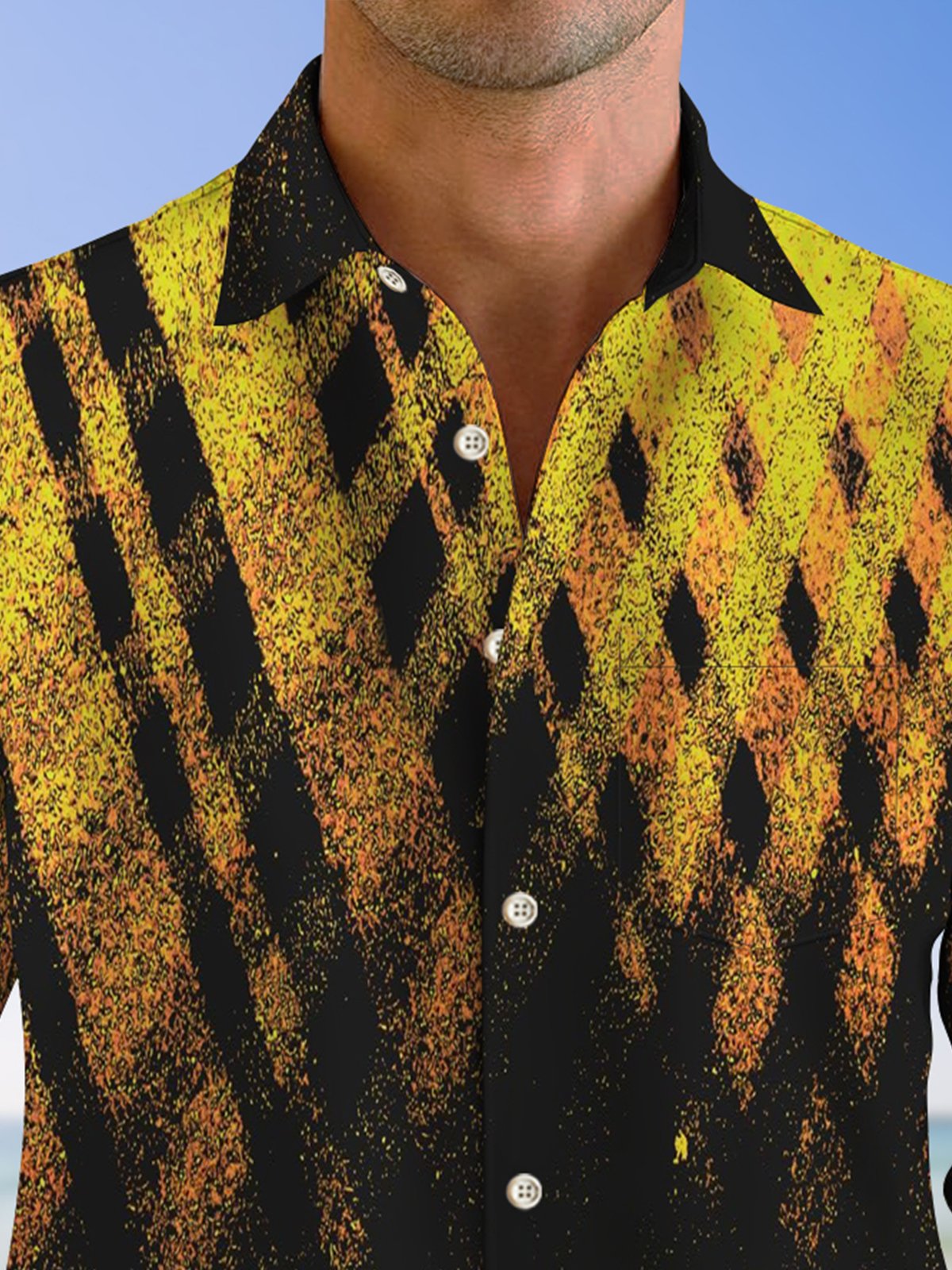 Alohadaddy Vintage Plaid Gradient Button Pocket Casual Long Sleeve Shirt