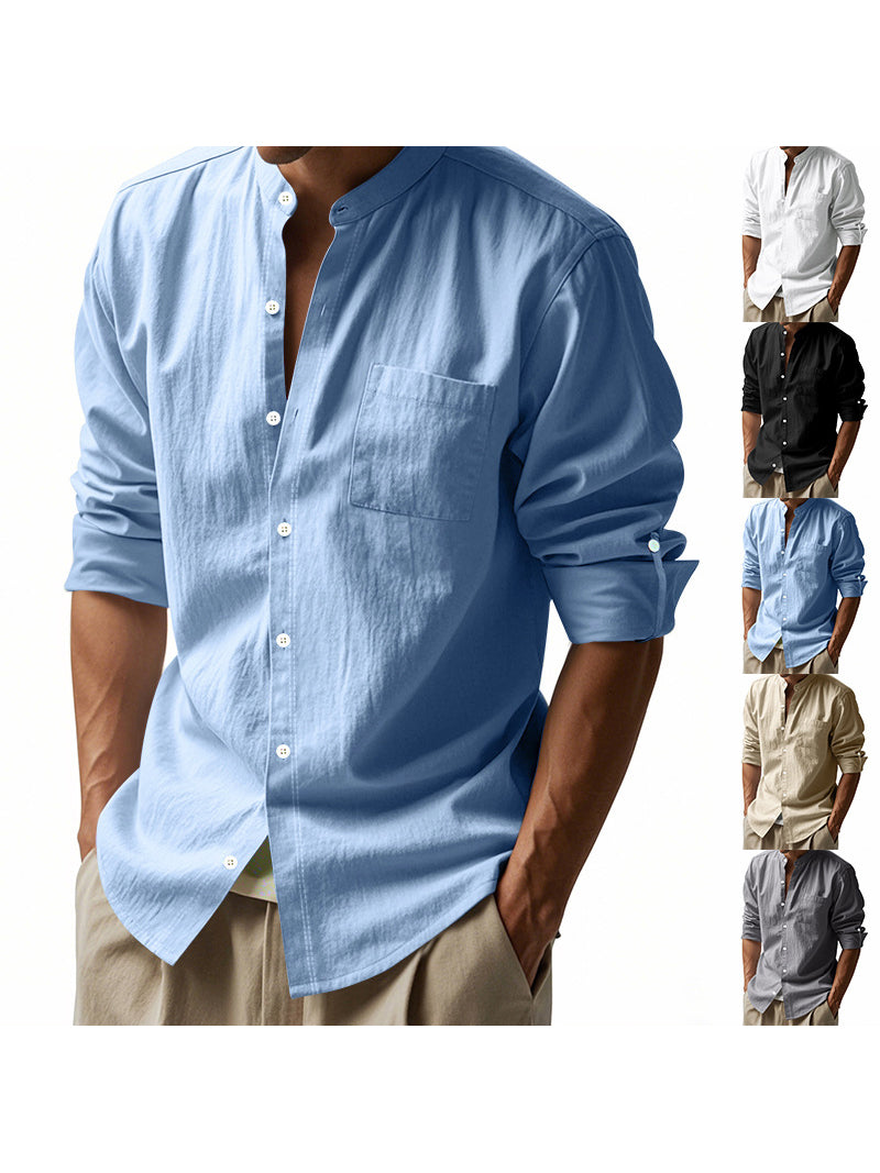 Alohadaddy® Basic Solid Color Cotton Linen Print Men's Button Pocket Long Sleeve Shirt Big & Tall