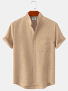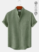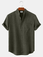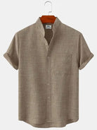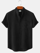 Alohadaddy Basic Solid Color Stand Collar Short Sleeve Shirt