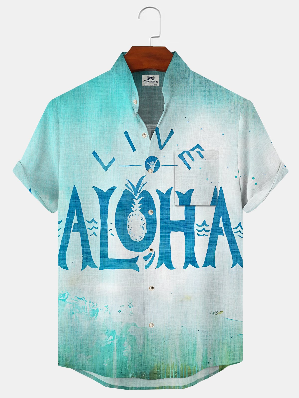 Alohadaddy Beach Gradient Button Pocket Casual Short Sleeve Stand Collar Shirt